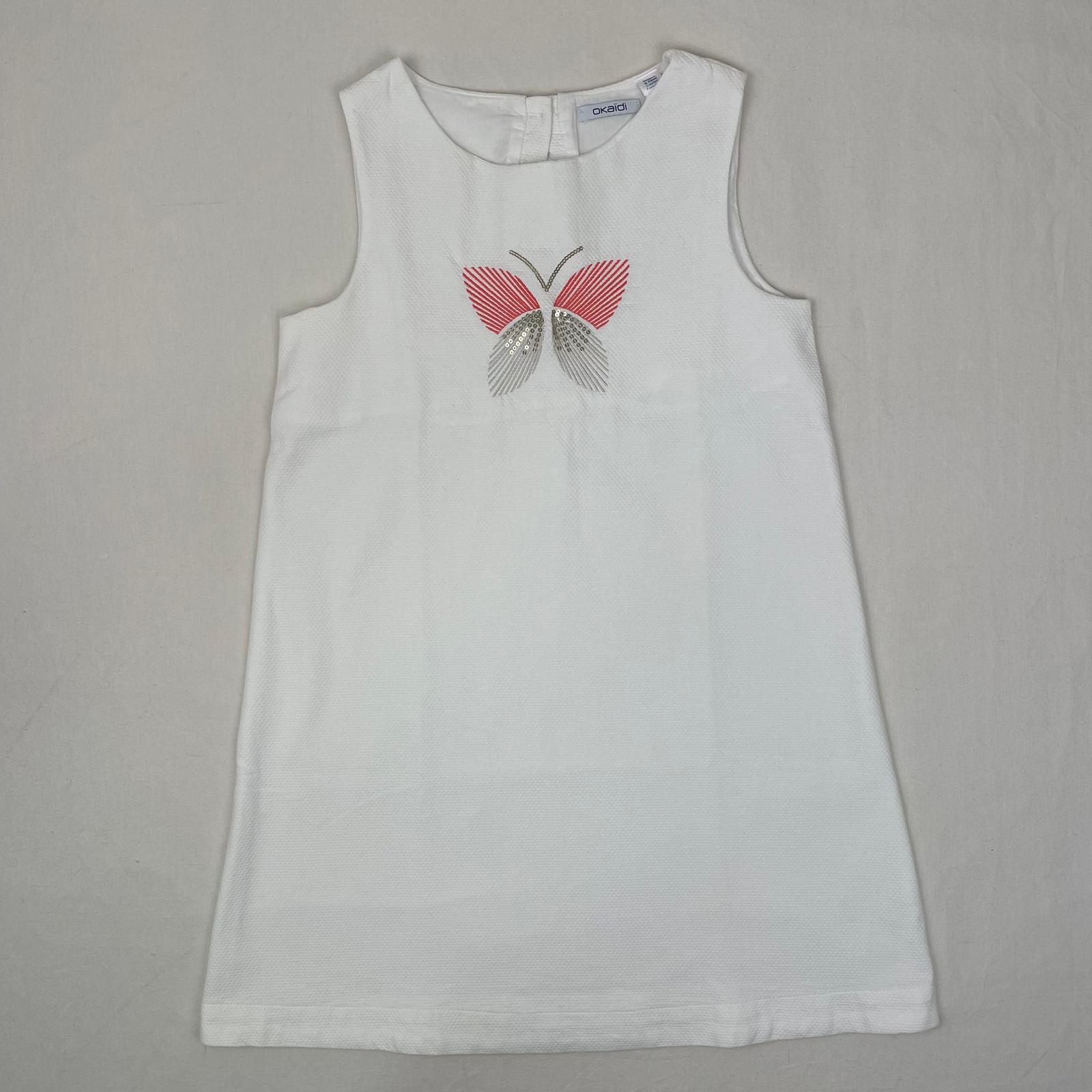 Autres commentaires : Robe longue sans manches doublée en coton. Boutons dans le dos. Broderie papillon à paillettes dorées.