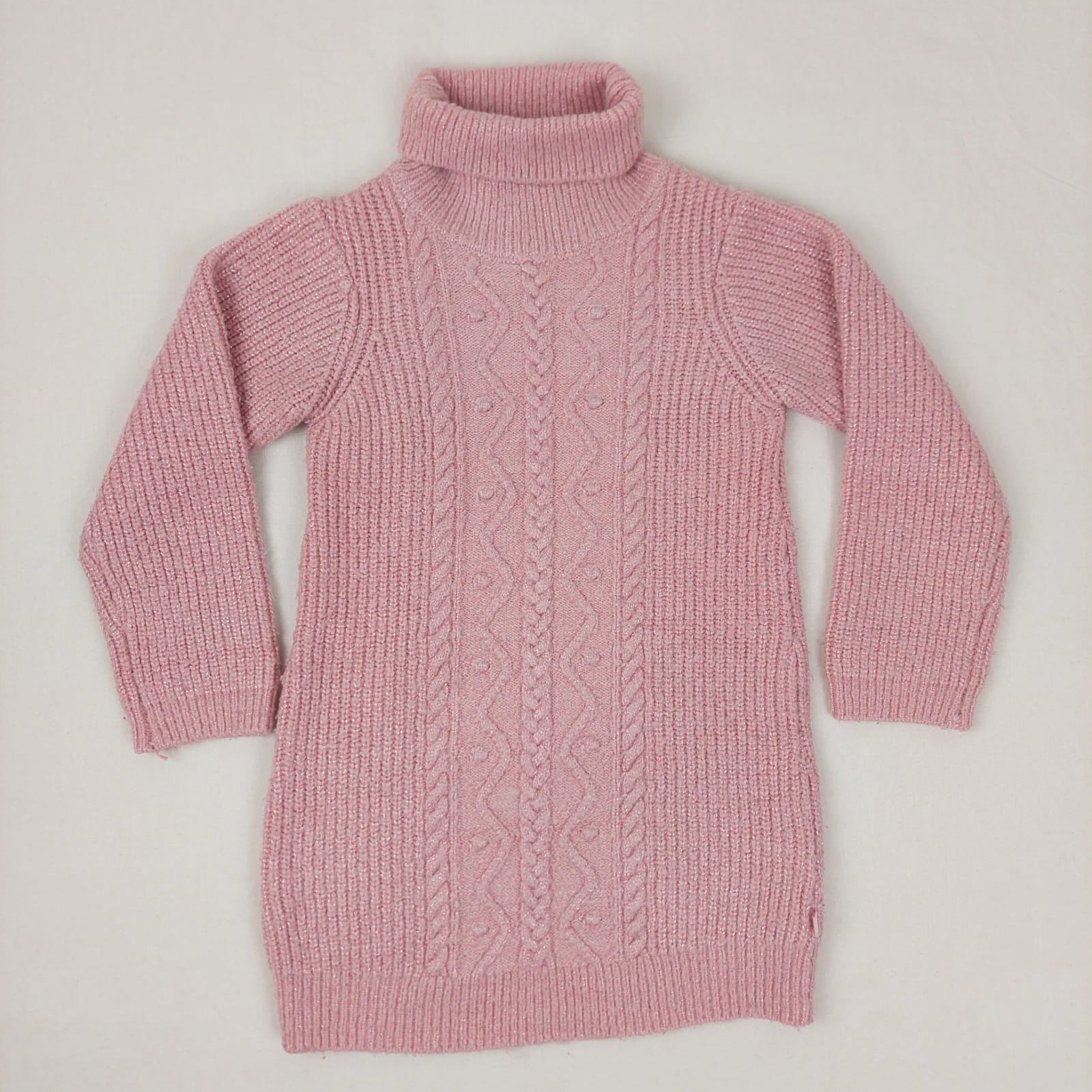Autres commentaires : 17% polyester, 3% fibre métallique, 1% élasthanne, Robe pull en maille rose, col roulé.