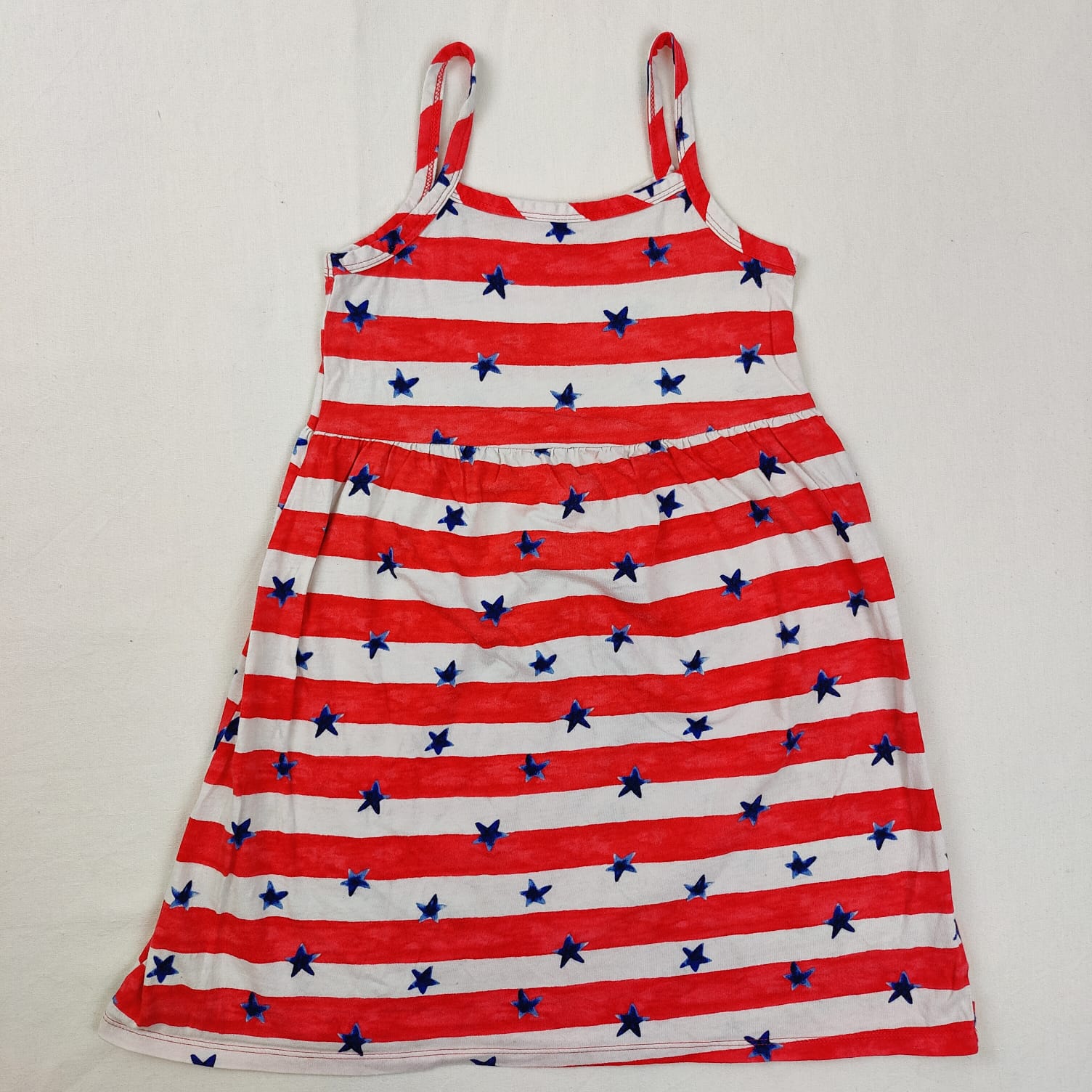 Autres commentaires : Robe rayé blac et rouge, avec motifs étoile bleu