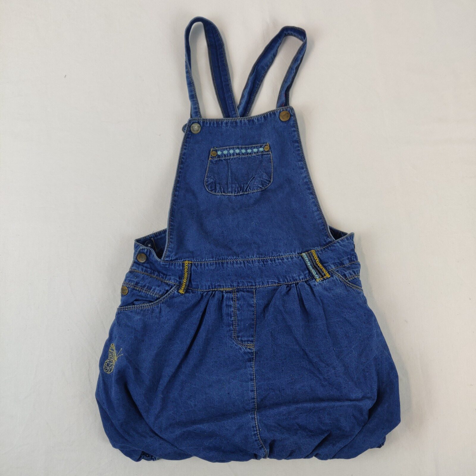 Autres commentaires : Robe boule en denim bleu brut à dos nu. Bretelles réglables à l’aide de pressions. Une pochette centrale décorée de fleurs bleues brodées. Un papillon jaune brodé au niveau de la jupe. Coutures jaunes apparentes. 2 poches latérales. 2 poches arrières dont une décorée d’un papillon jaune brodé.