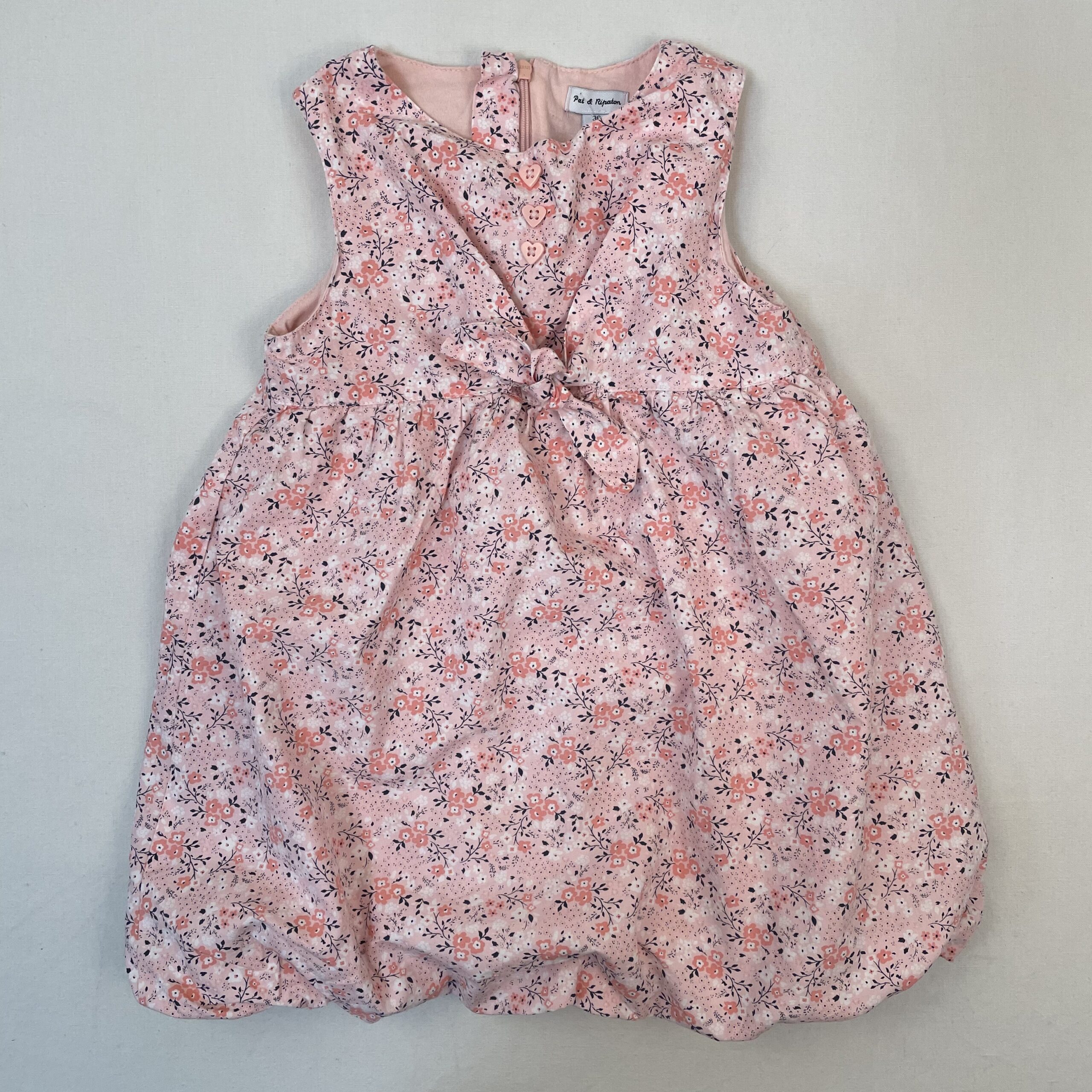 • Robe boule sans manches doublée en jersey, fermeture par zip au dos. Motif petites fleurs.