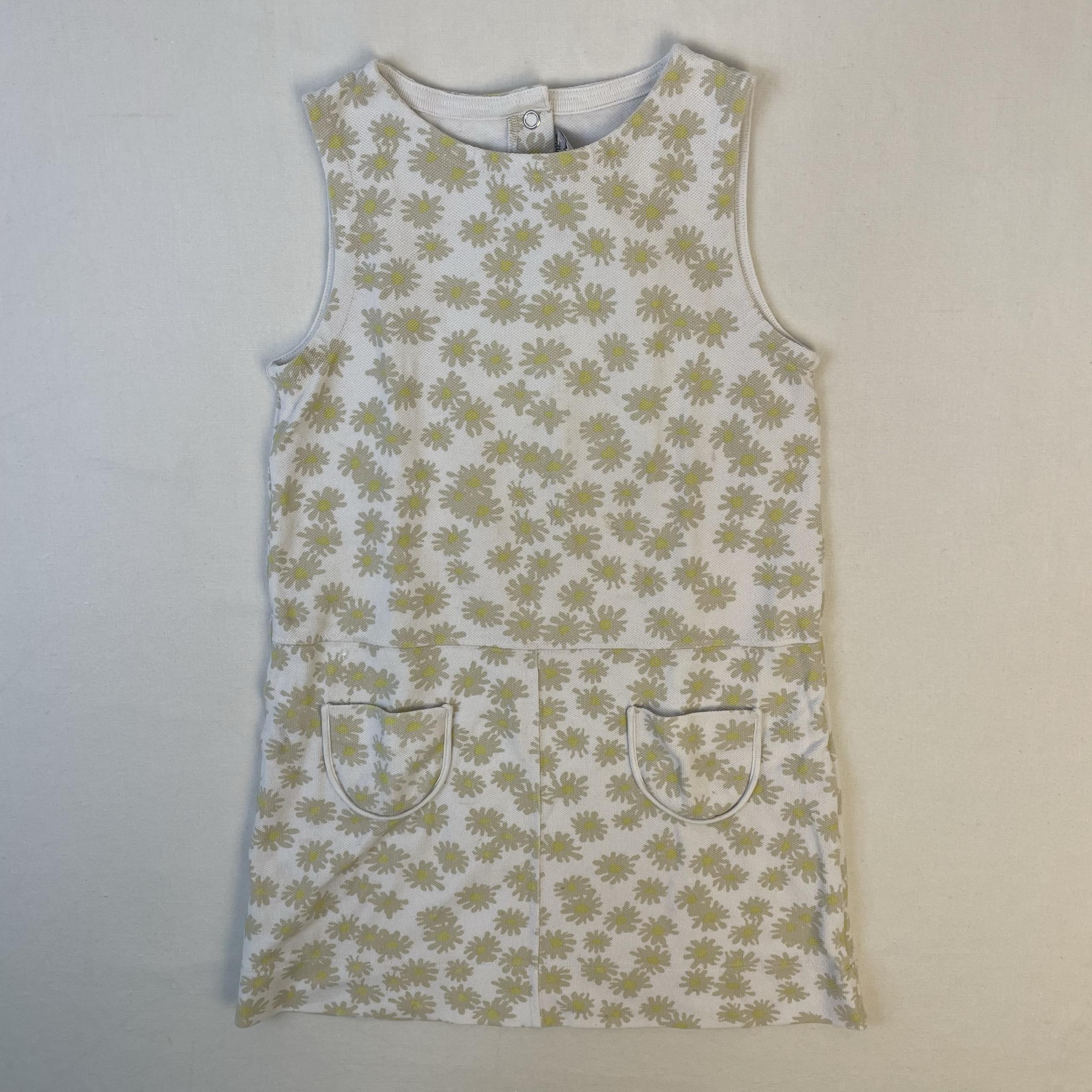 - Robe de type chasuble sans manches avec motif fleurs, fermeture par boutons au haut du dos.