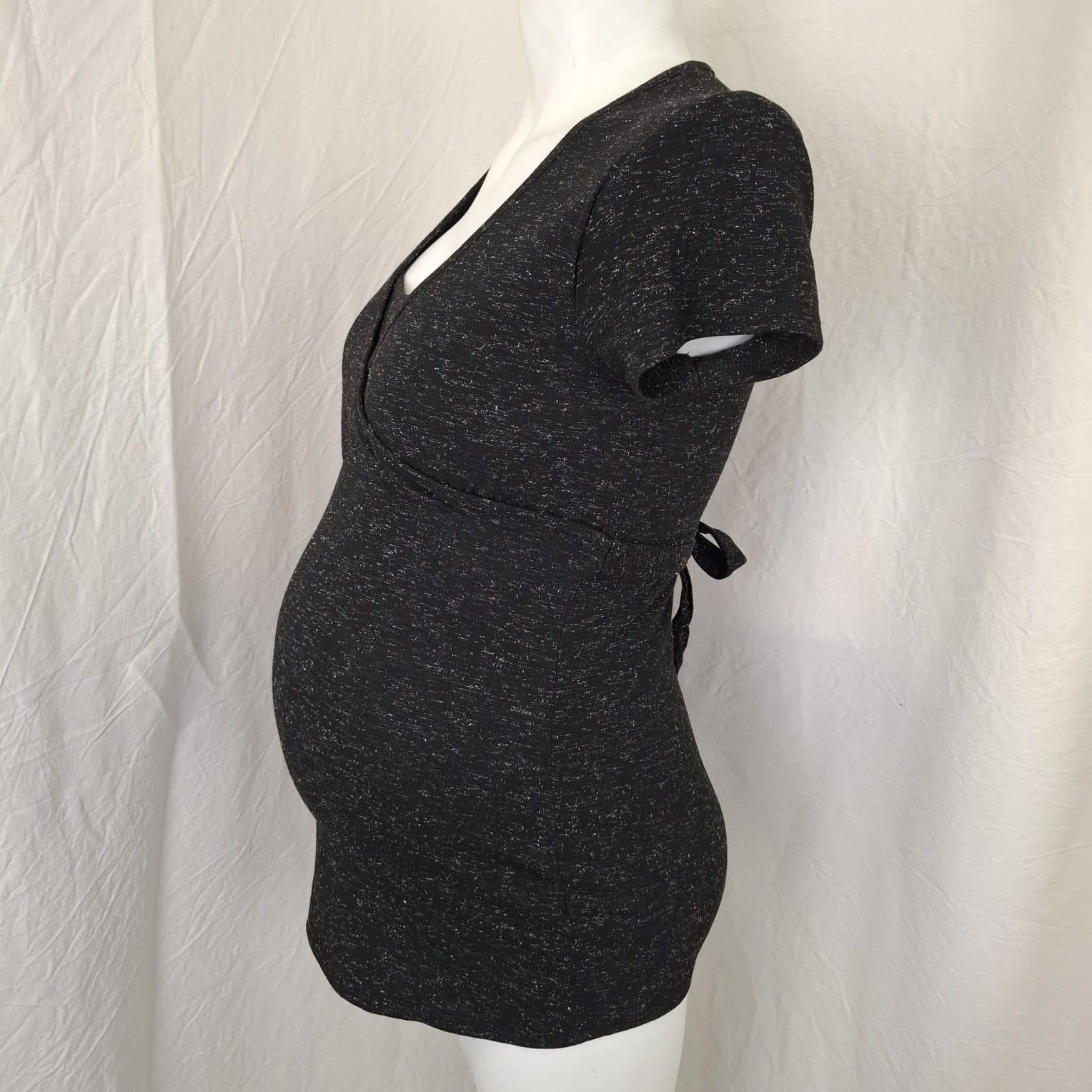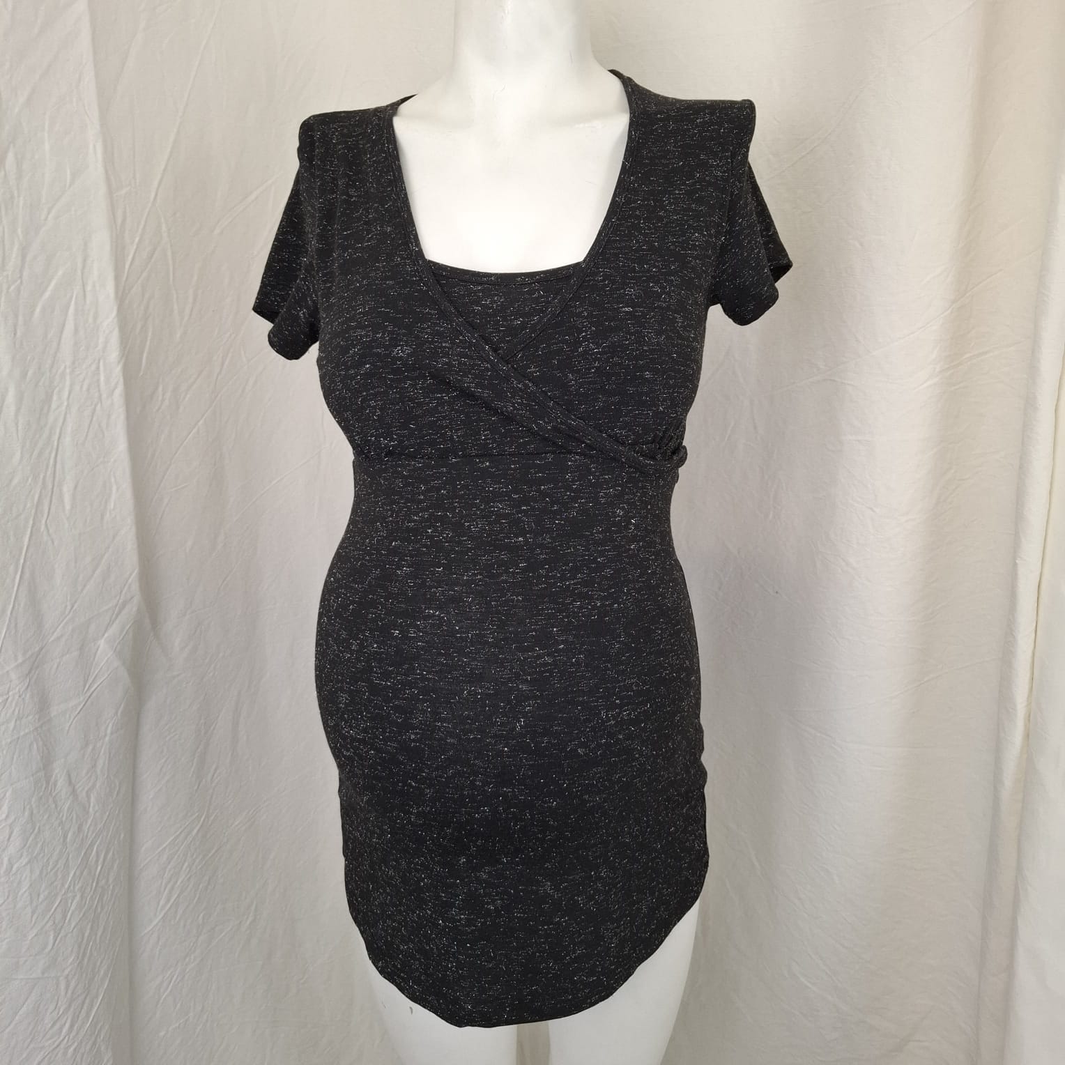 Autres commentaires : Robe Prémaman taille S noir avec motifs argentés , manches courtes