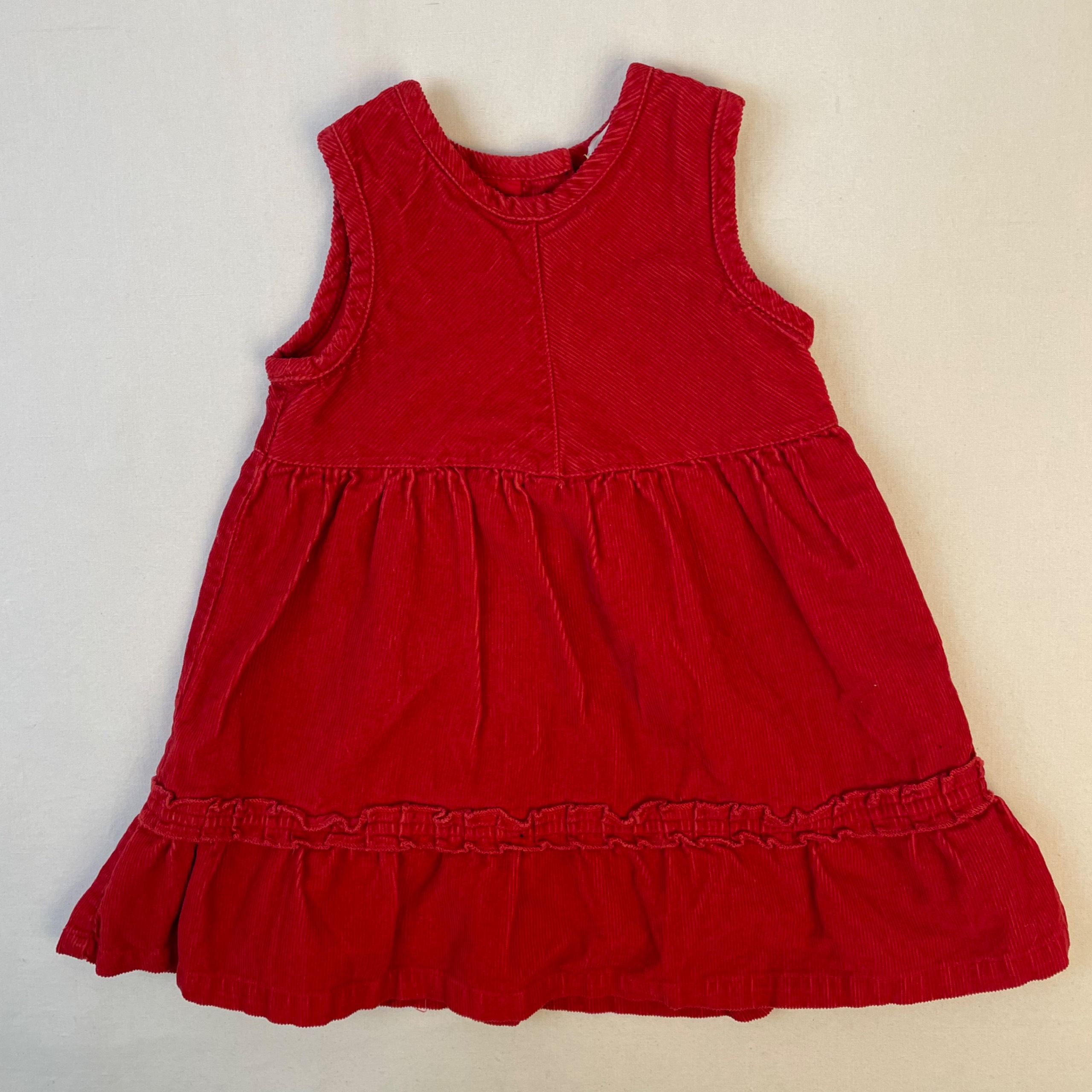 - Robe en velours sans manches, fermeture par boutons classiques au dos, volants.