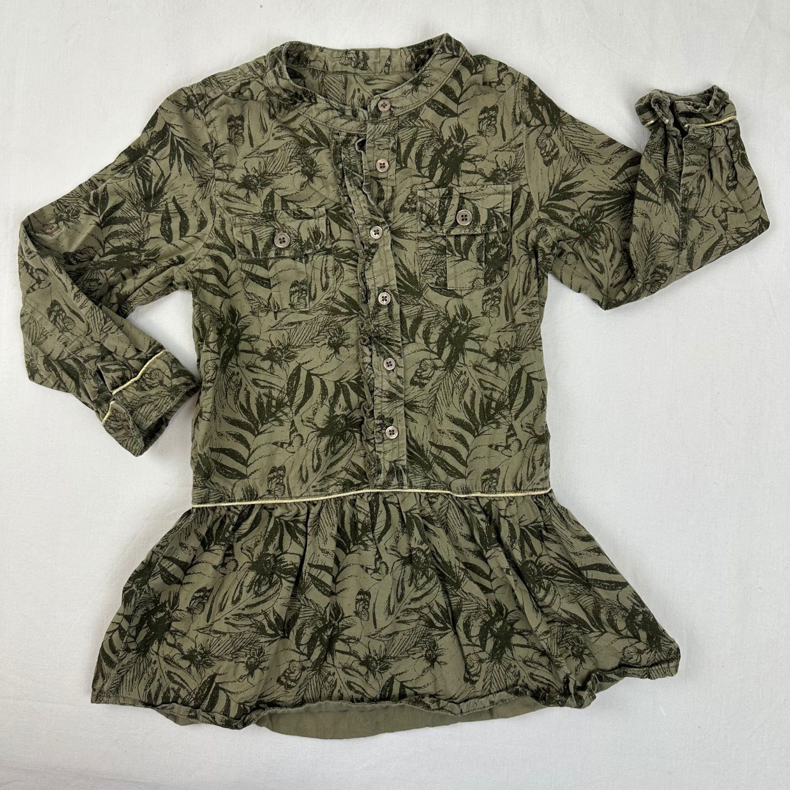 Autres commentaires : Robe manches longues vert fleuri avec une fermeture devant par boutons.