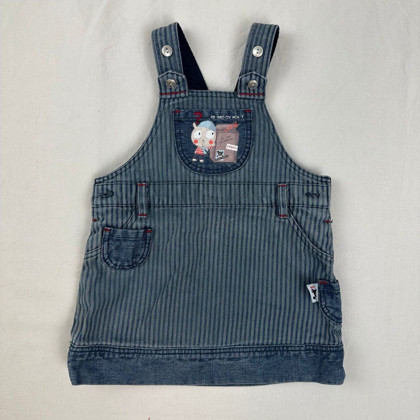 Autres commentaires : Robe bleu en jean avec bretelles et une fermeture à la taille par boutons.