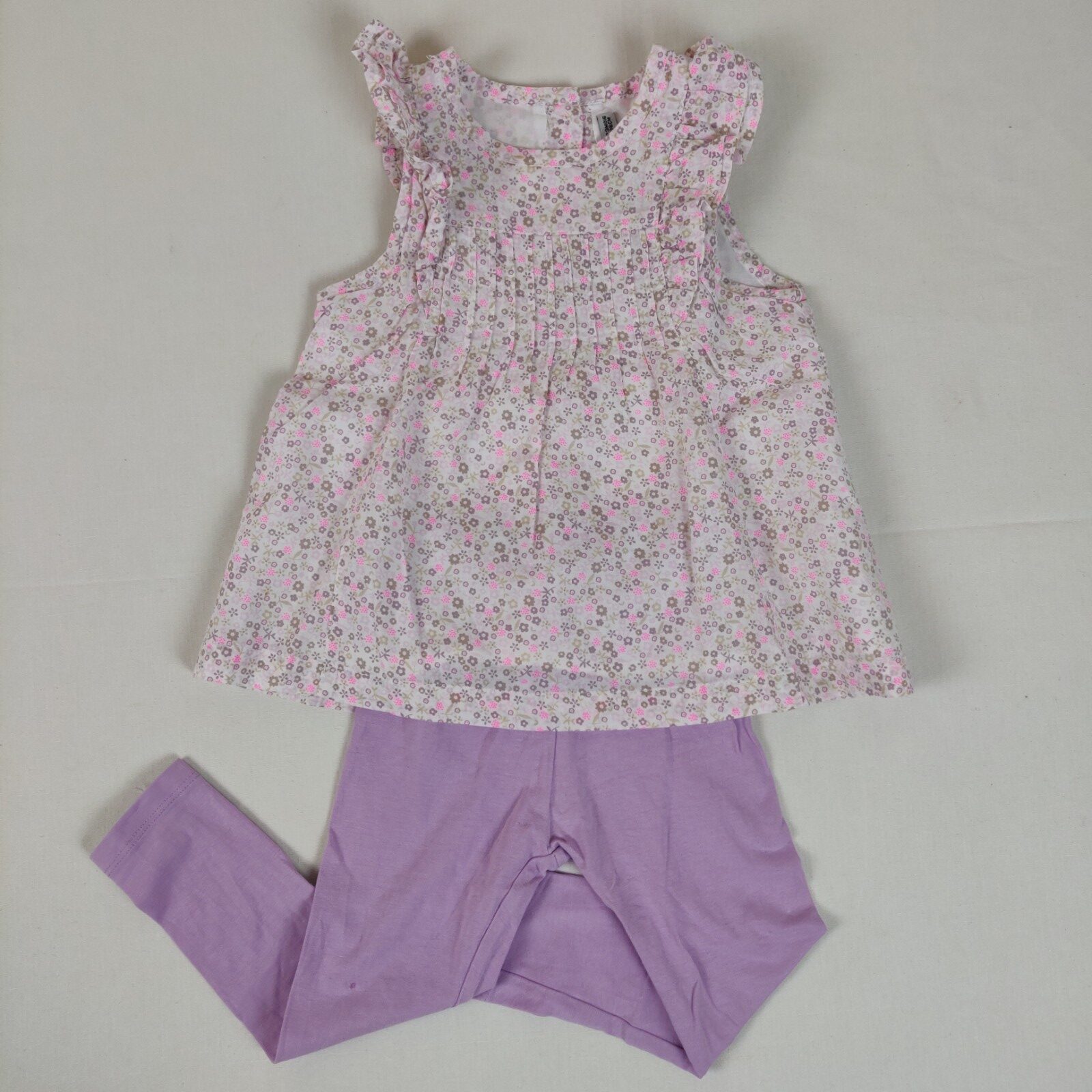 Autres commentaires : Robe doublée à manches courtes volantées – écru avec motif Liberty multicolores. Ouverture centrale tout le long du dos à boutons classiques nacrés (un bouton supplémentaire fourni). Legging parme offert. Taille élastique. Genou droit légèrement reprisé et tâche noire dans le bas de la jambe gauche.