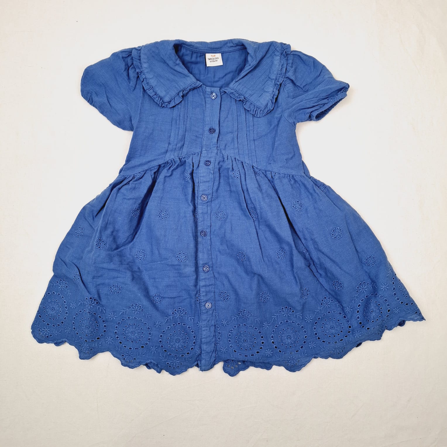 Autres commentaires : Robe à manches courtes bleu roi à manches courtes avec broderie anglaise, doublure.