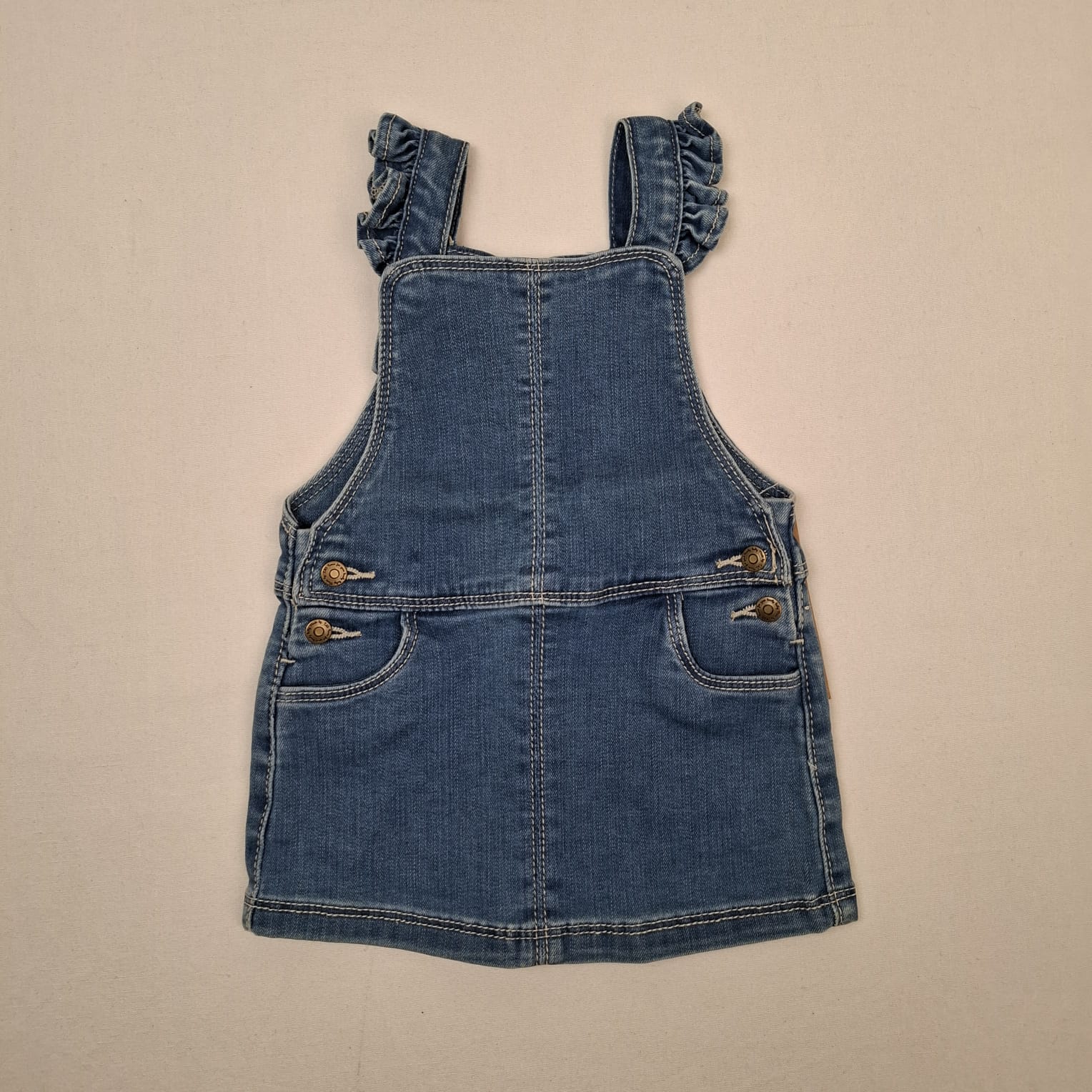 Autres commentaires : 19% polyester, 14% lyocell, 10% rayonne et 1% élasthanne. Robe salopette en jean bleu, fermeture par boutons pression latérales, hauteur des bretelles réglable par 2 boutons pression.