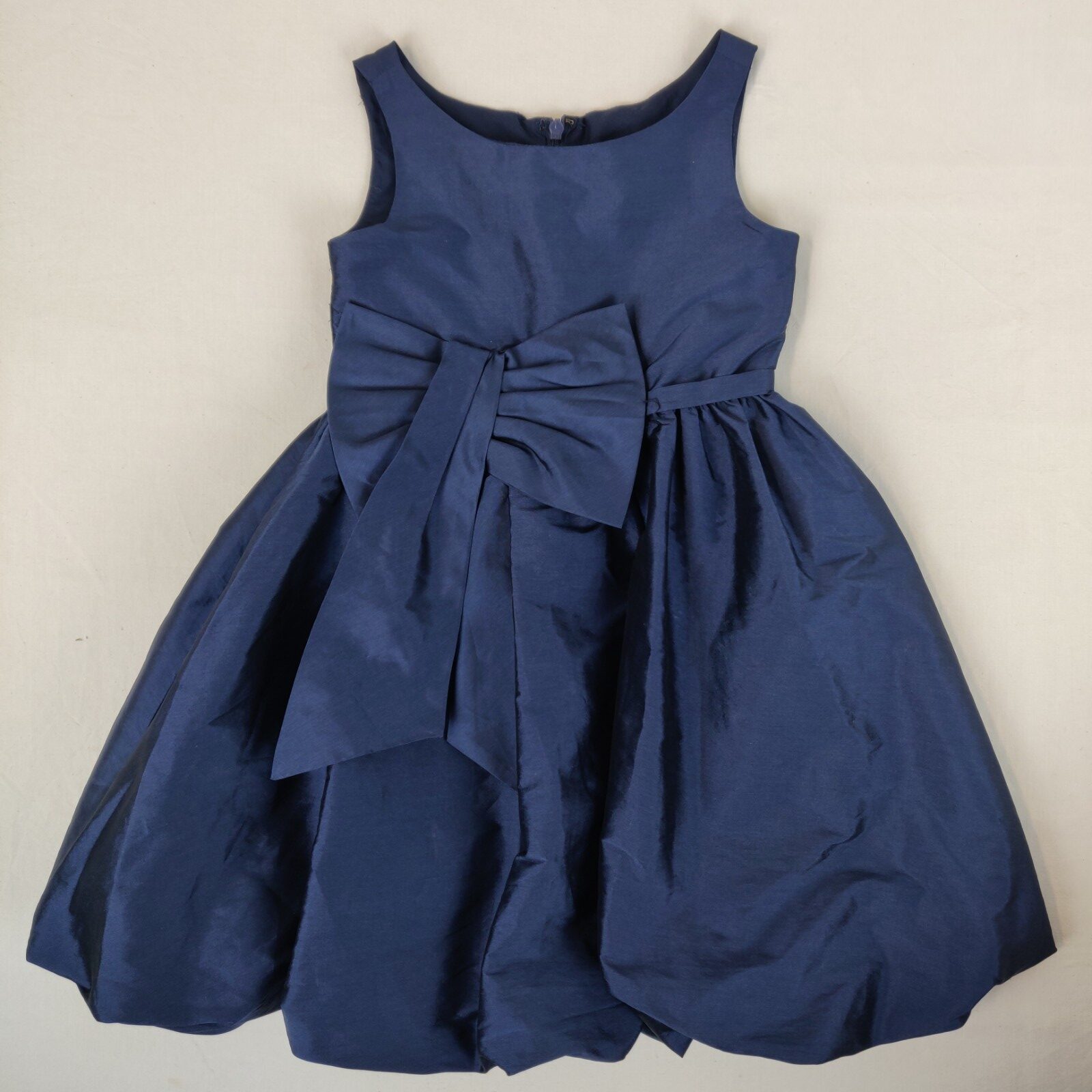 Autres commentaires : Robe bleu foncé pour occasion spéciale avec un grand noeud autour de la taille et une fermeture zip derriére la robe.