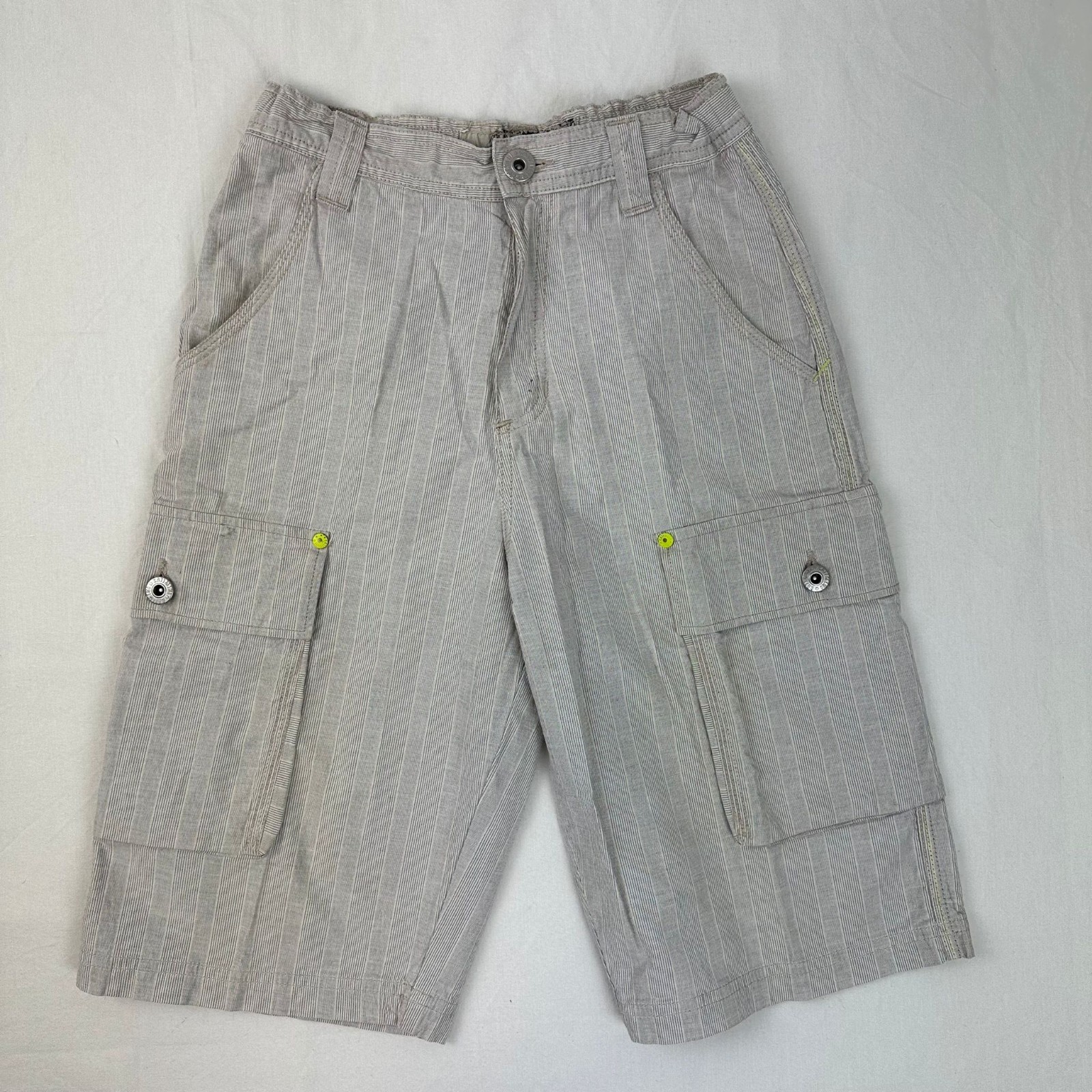 Autres commentaires : Bermuda beige avec taille élastiquée et ceinturée.