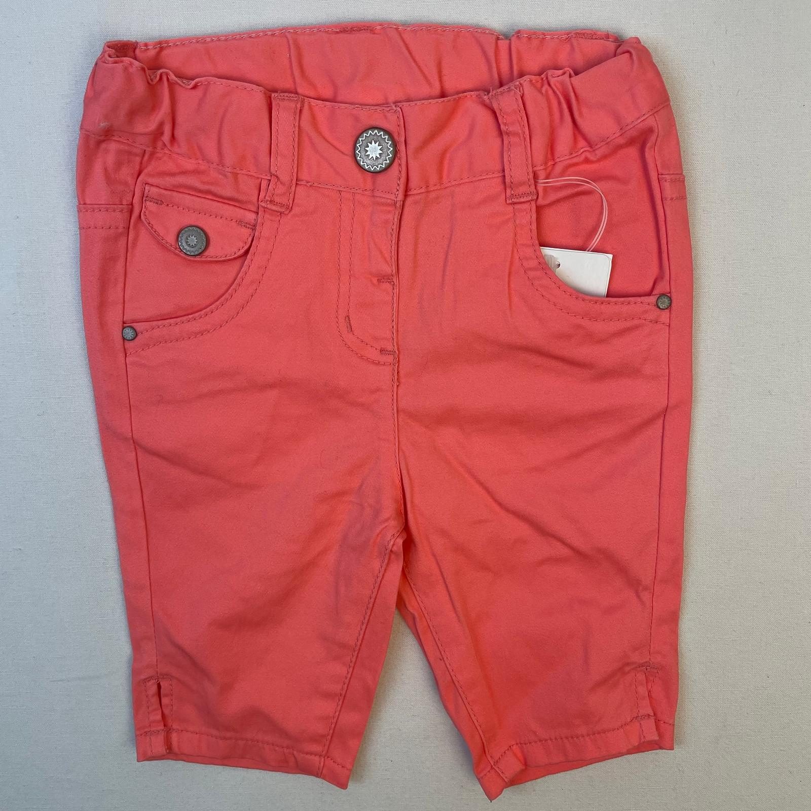 - Pantalon en toile rose orangé, devant fermeture par bouton pression.
