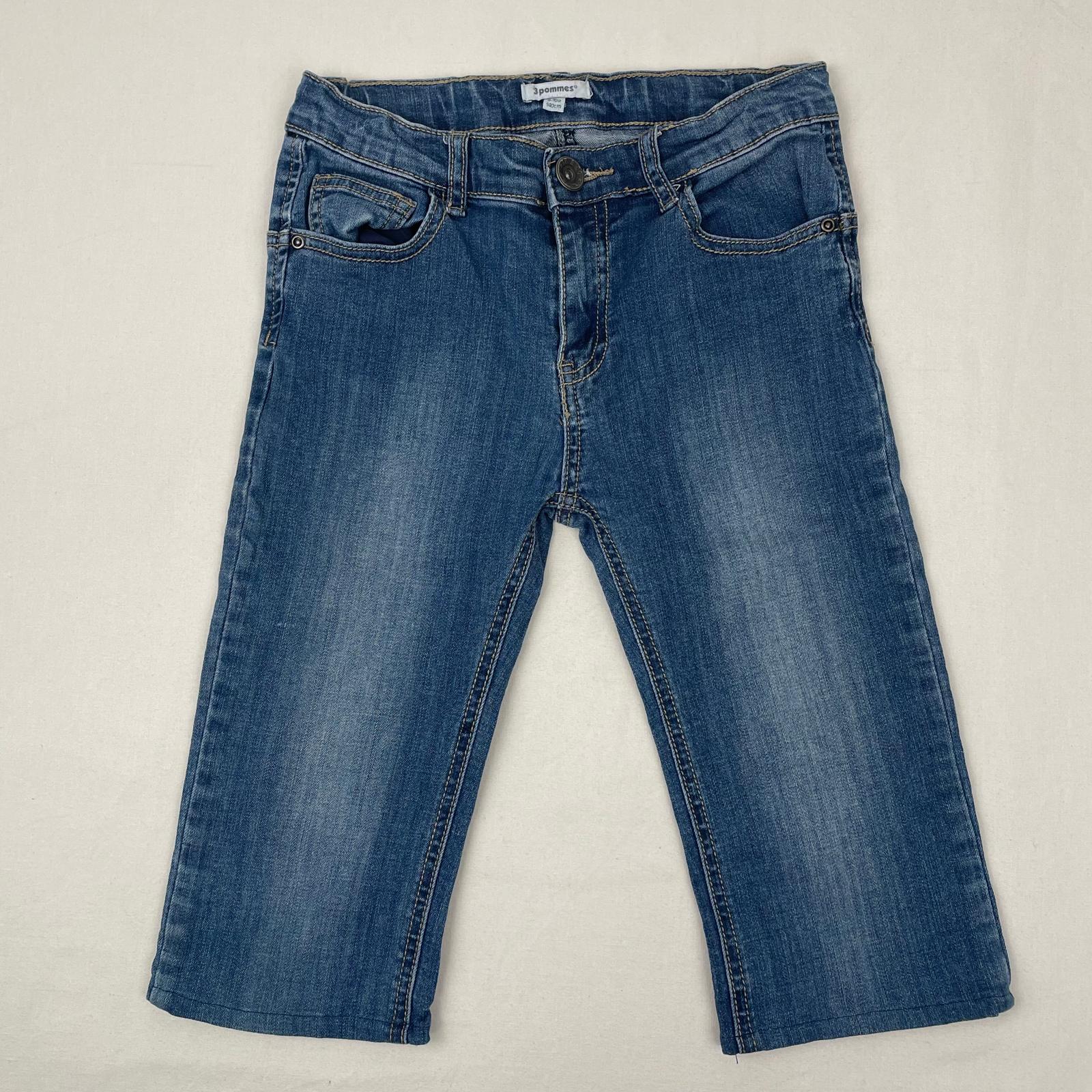 Autres commentaires : Pantacourt en jean, taille élastiquée réglable.