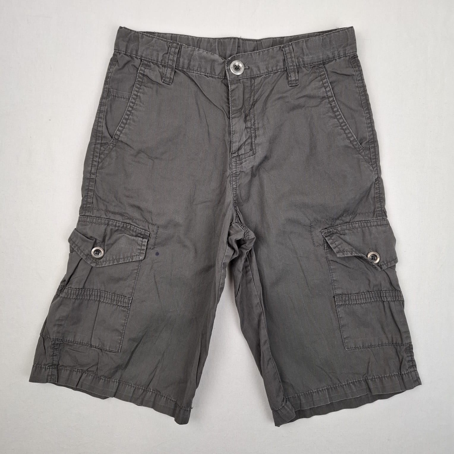 Autres commentaires : Short bermuda gris foncé, fermeture par bouton et zip, ceinture ajustable par élastique intérieur, multi-poches.