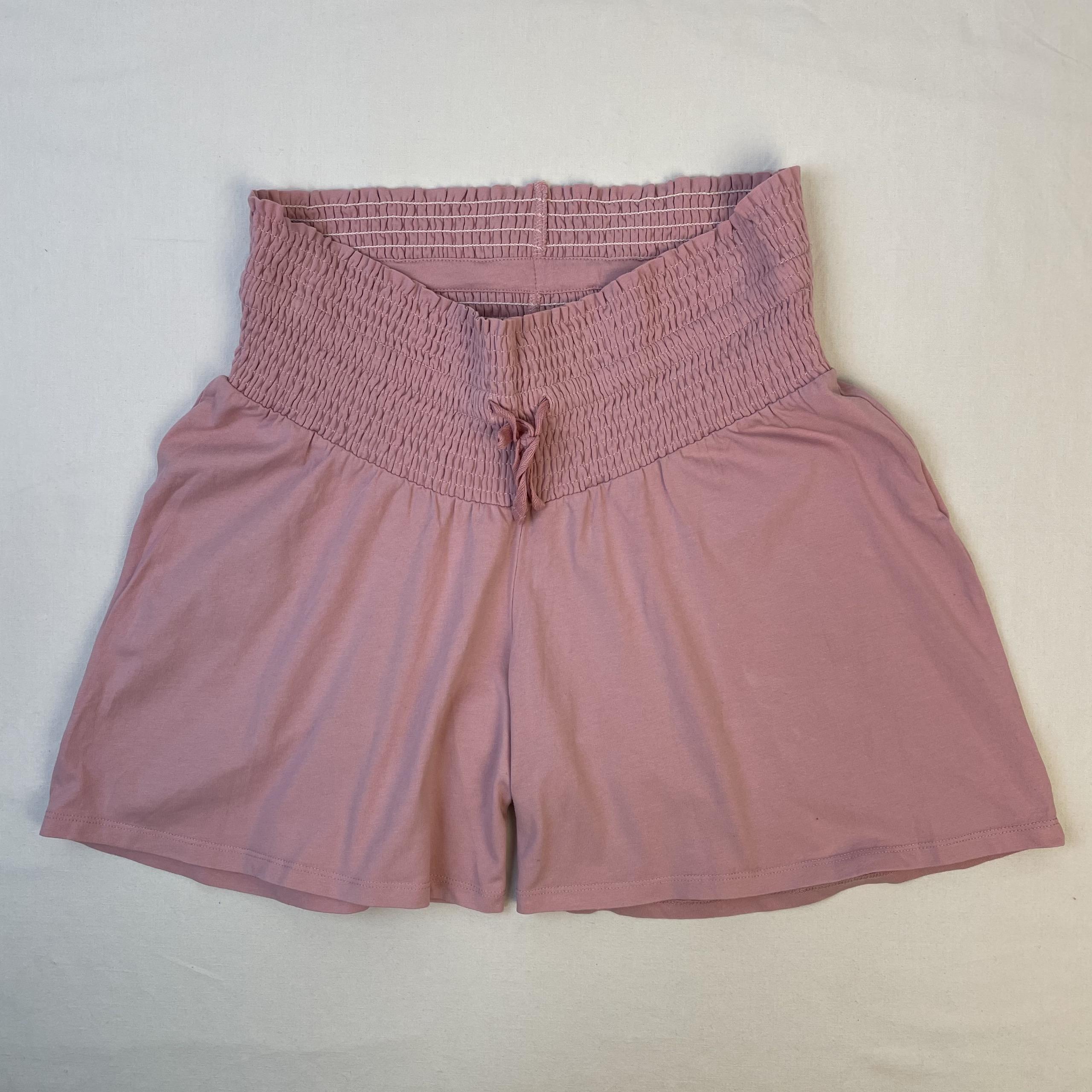 - Short rose pâle pour taille M, taille élastique réglable ondulé avec cordon.