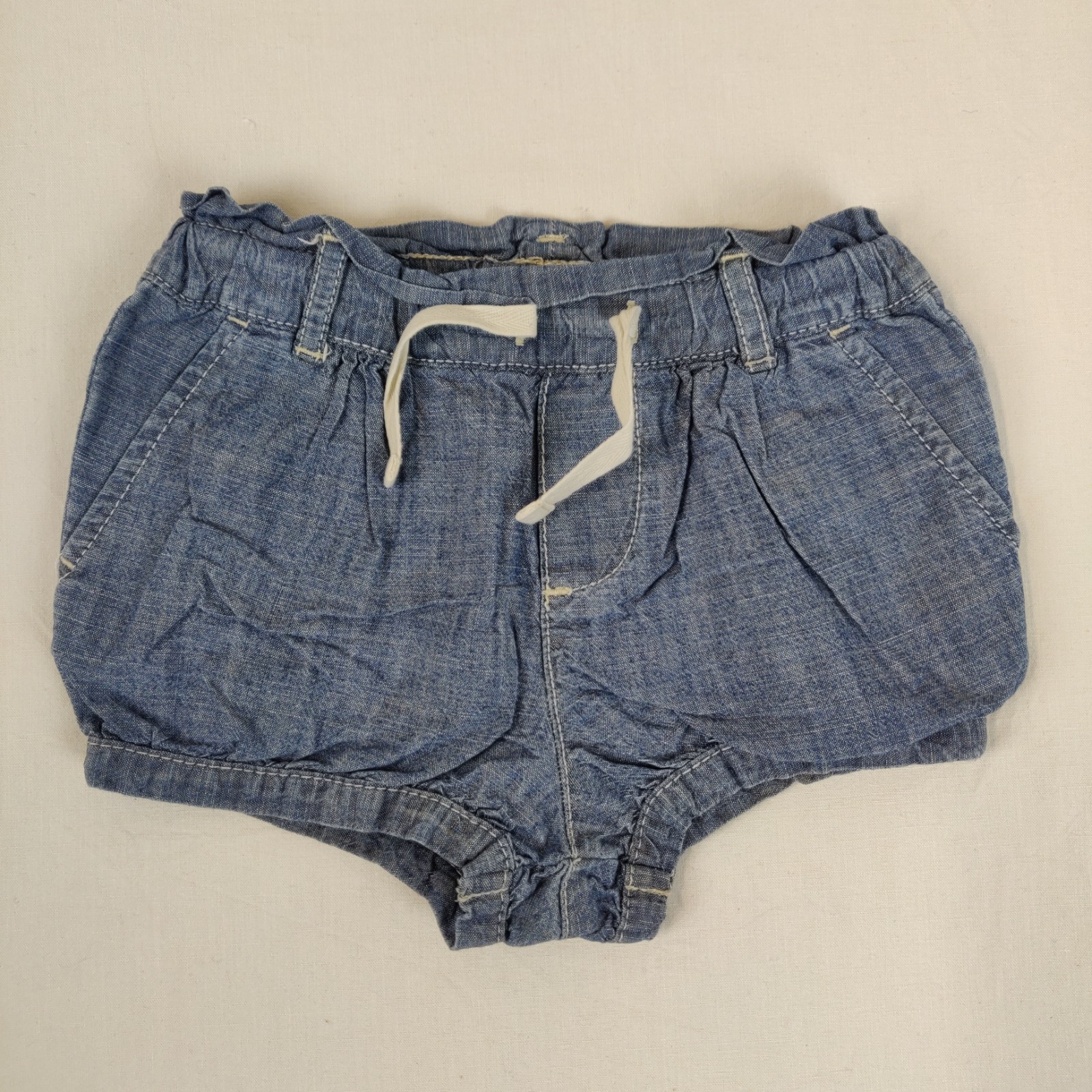 Autres commentaires : Short – bleu chiné. Taille élastique avec cordon interne blanc. 2 poches latérales et 2 poches arrières. Très discrète tâche marronée à l’arrière du short.