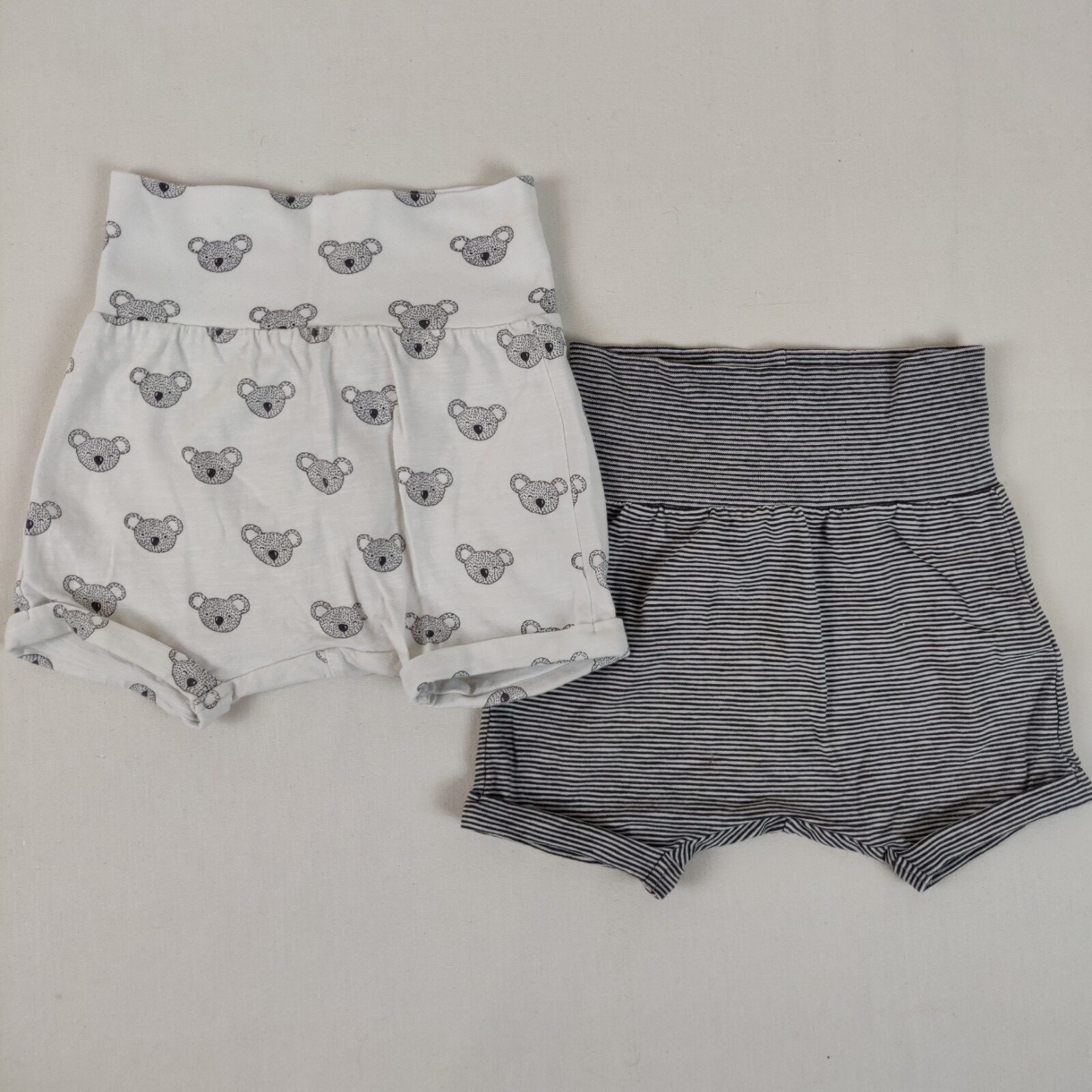 Autres commentaires : Coton biologique – Lot de 2 bloomers. Large taille élastique. Un bloomer blanc avec motifs koalas noirs. Un bloomer rayé noir et blanc.