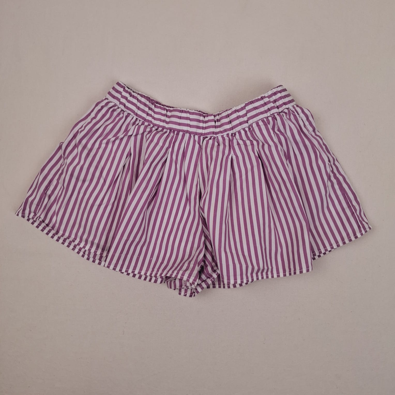 Autres commentaires : Short-jupe a rayures blanches et violetteS à doubluré, taille élastique
