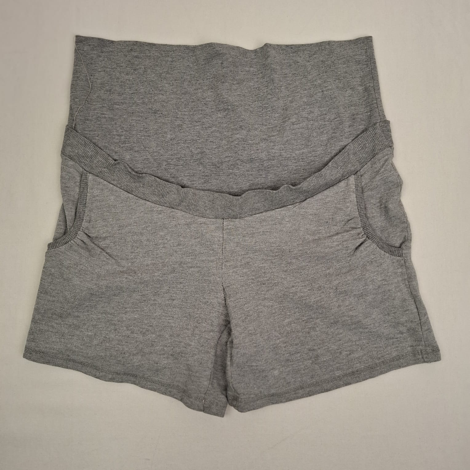 Autres commentaires : Short en molleton gris, bandeau en coton pour le ventre élastiqué en haut, 2 poches latérales, taille 42/44.