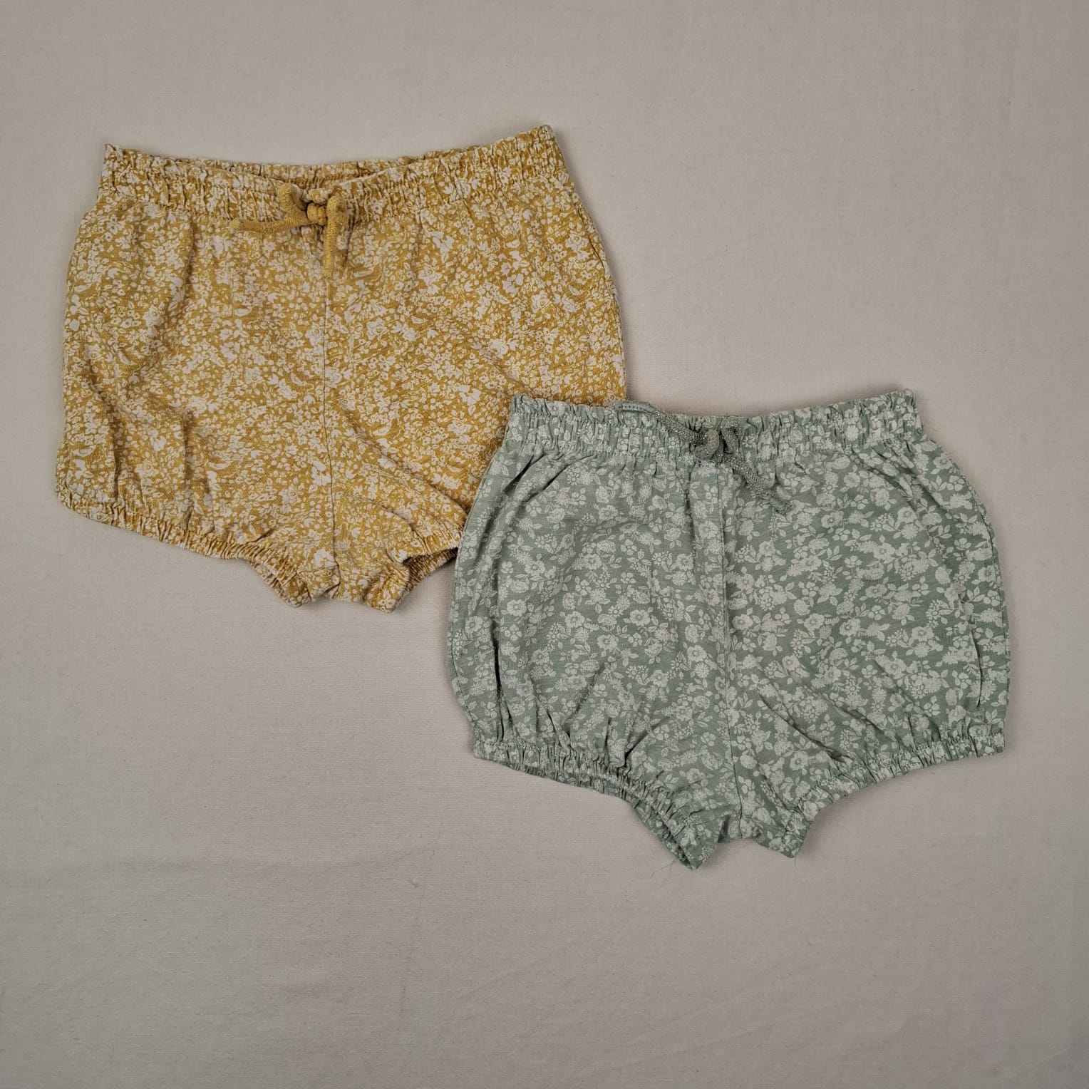 Autres commentaires : Lot de 2 shorts, motif fleuri, taille élastiquée, fermeture au niveau des cuisses élastique avec effet bouffant.
