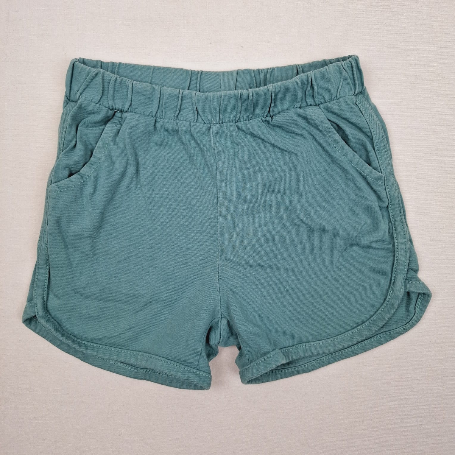 Autres commentaires : Short de sport court vert, large taille élastiquée.