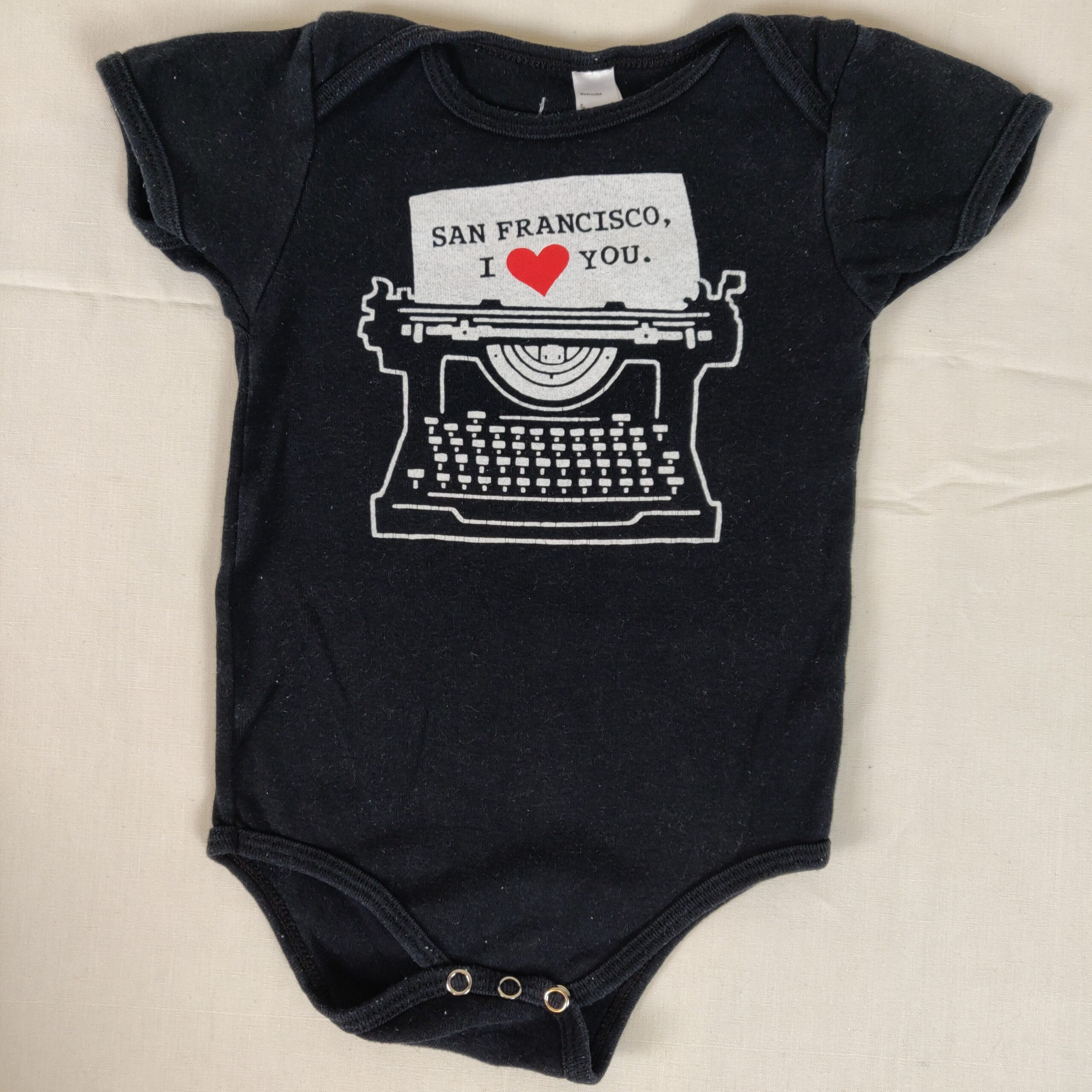 Autres commentaires : Body manches courtes, machine à écrire dessinée avec inscription « San Francisco, I love you »