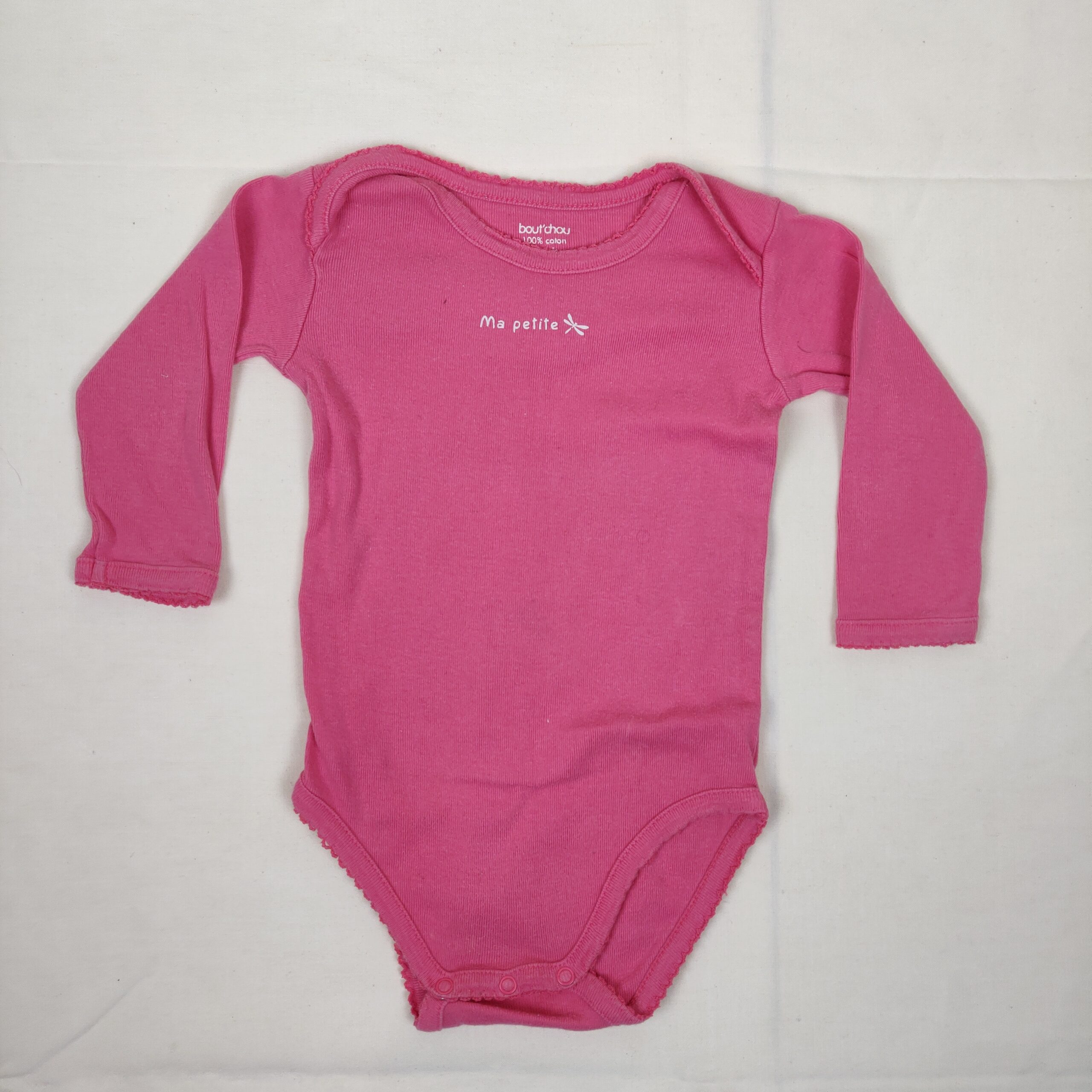 Autres commentaires : body manches longues rose avec inscription de couleur blanche Ma petite avec motif petite libellule