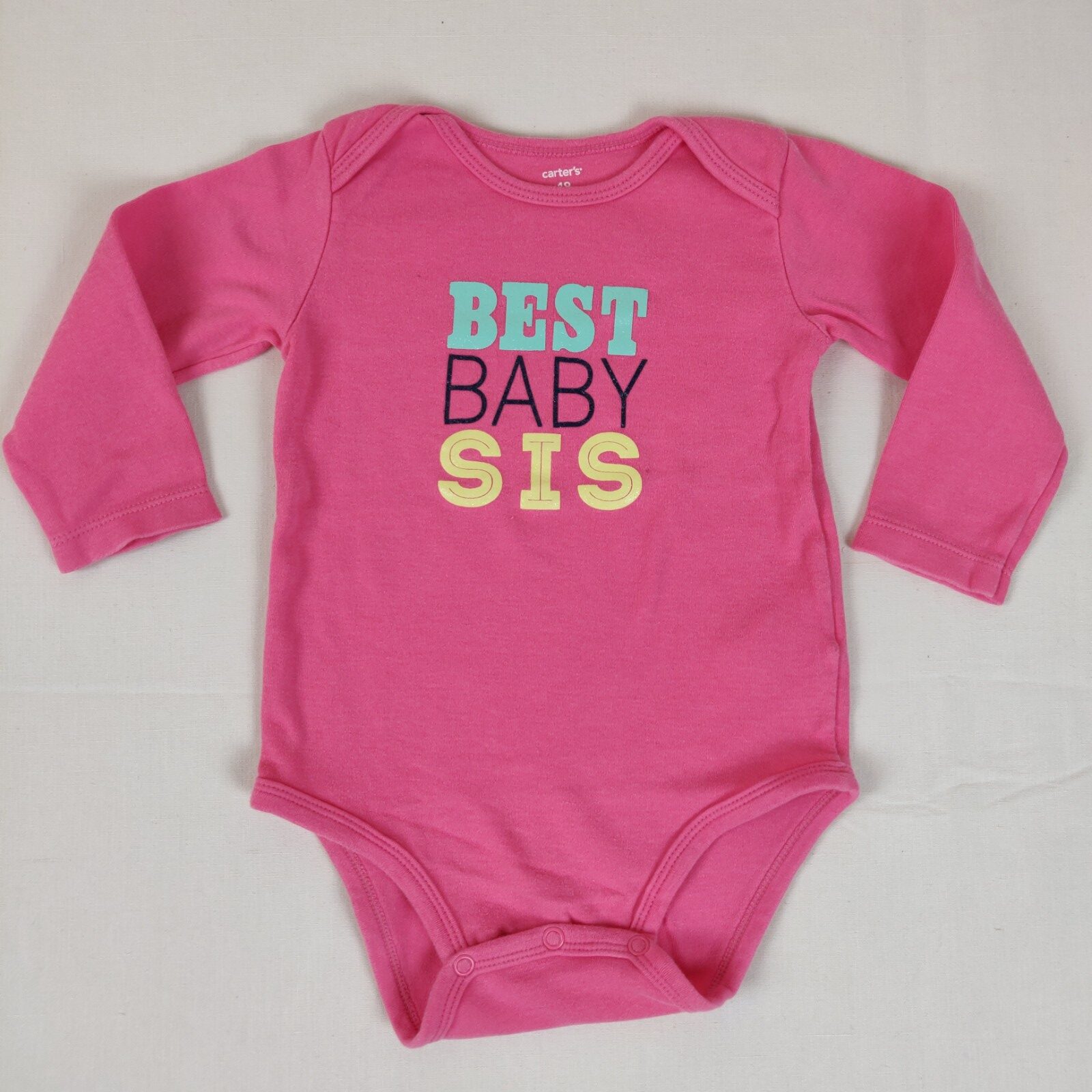 Autres commentaires : Body à manches longues – rose avec inscription mutlicolore pailletée « Best Baby Sis ».