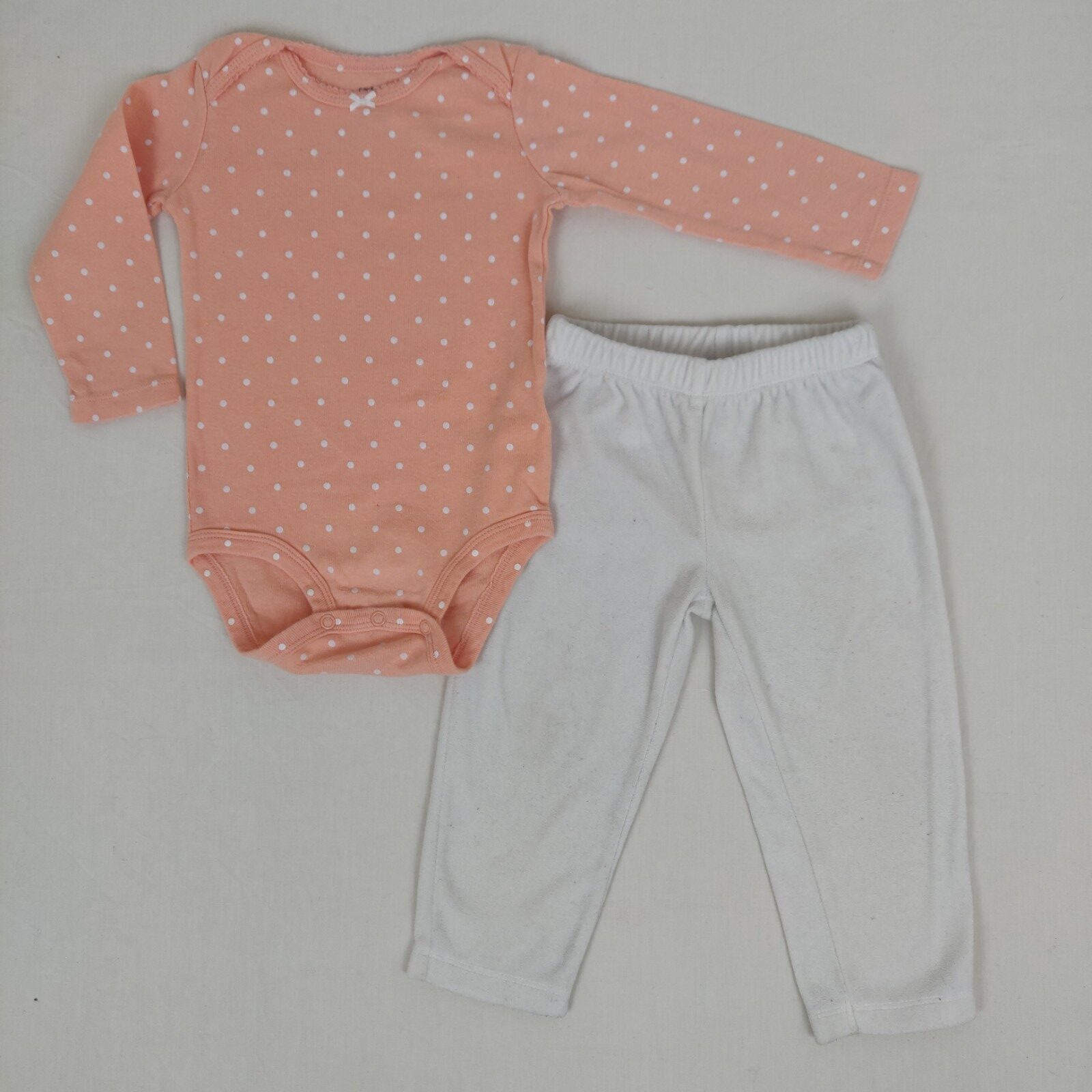 Autres commentaires : Body manches longues orange à pois blanc. Pantalon polaire blanc offert.