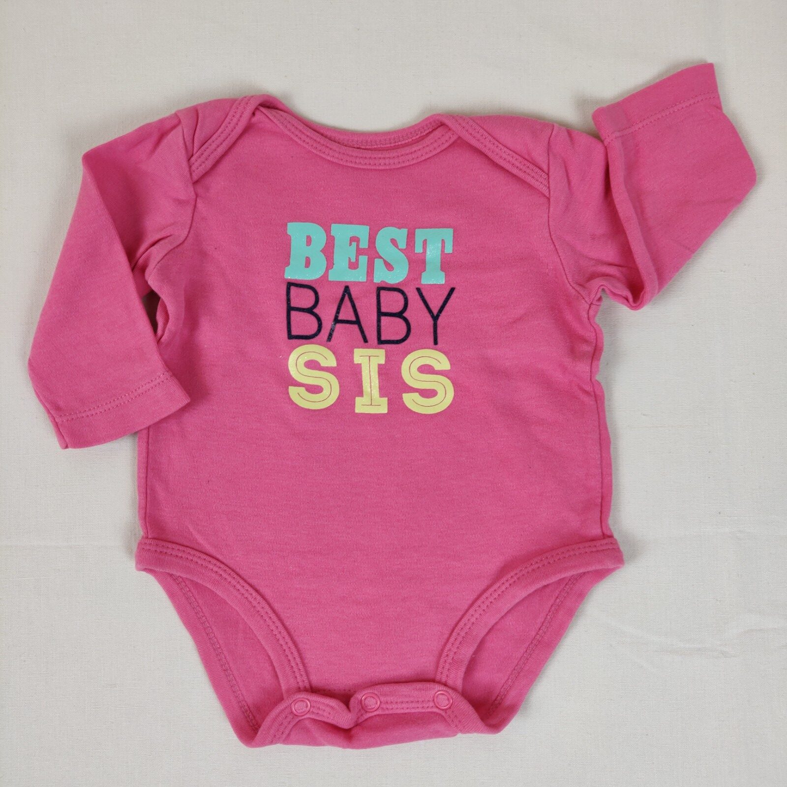 Autres commentaires : Body à manches longues – rose avec inscription mutlicolore pailletée « Best Baby Sis ».