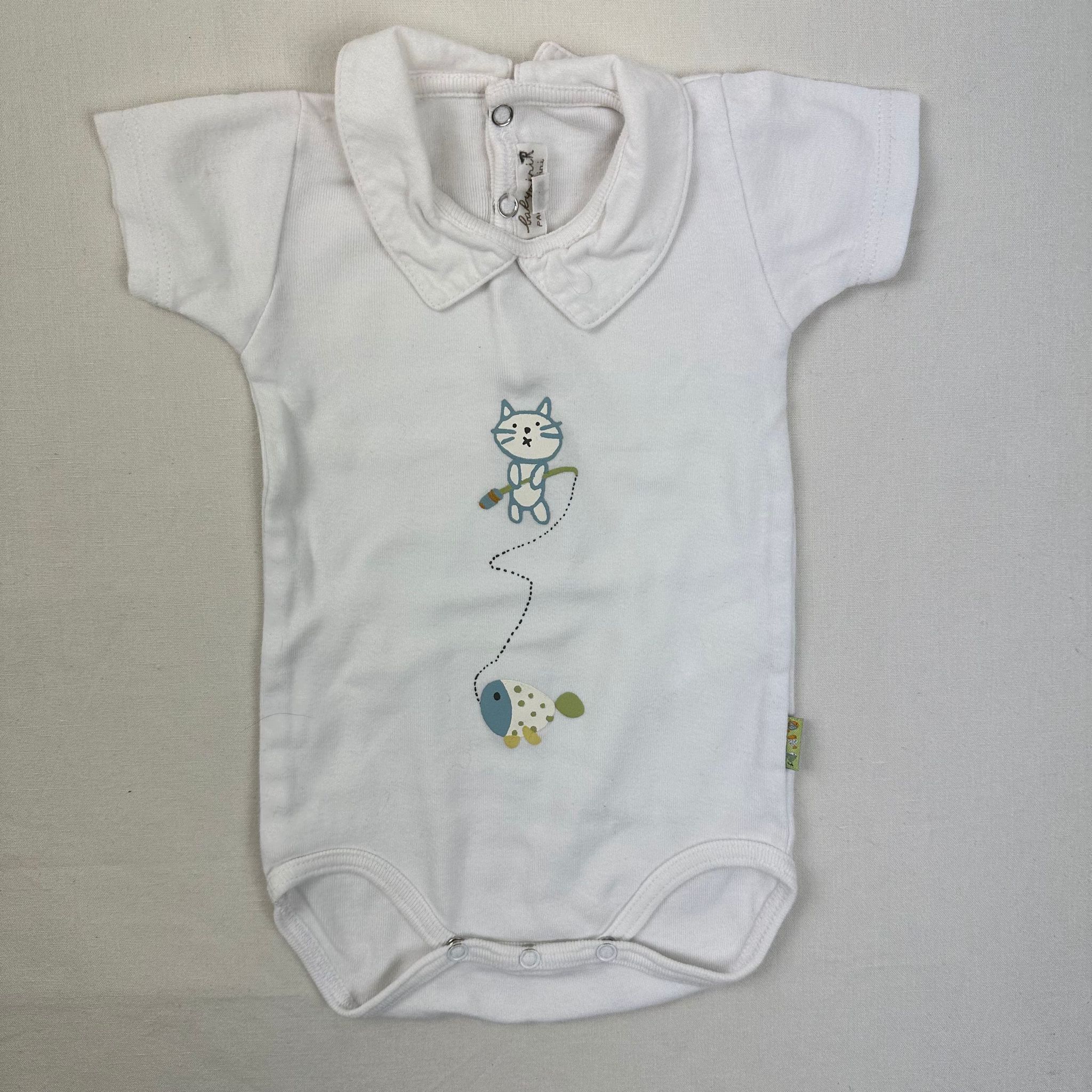 Autres commentaires : Body manches courtes blanc avec motif un petit chat.