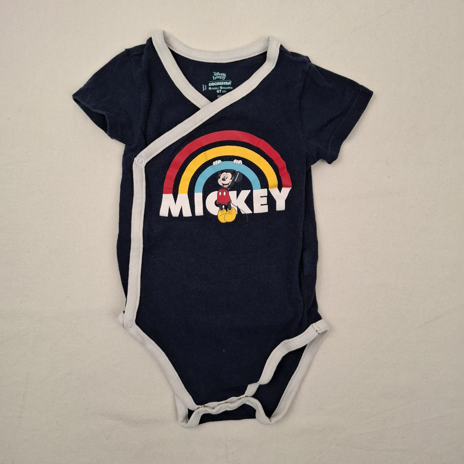 Autres commentaires : Body croisé à manches courtes, motif Mickey avec arc-en-ciel, finition bord-côte blanc.