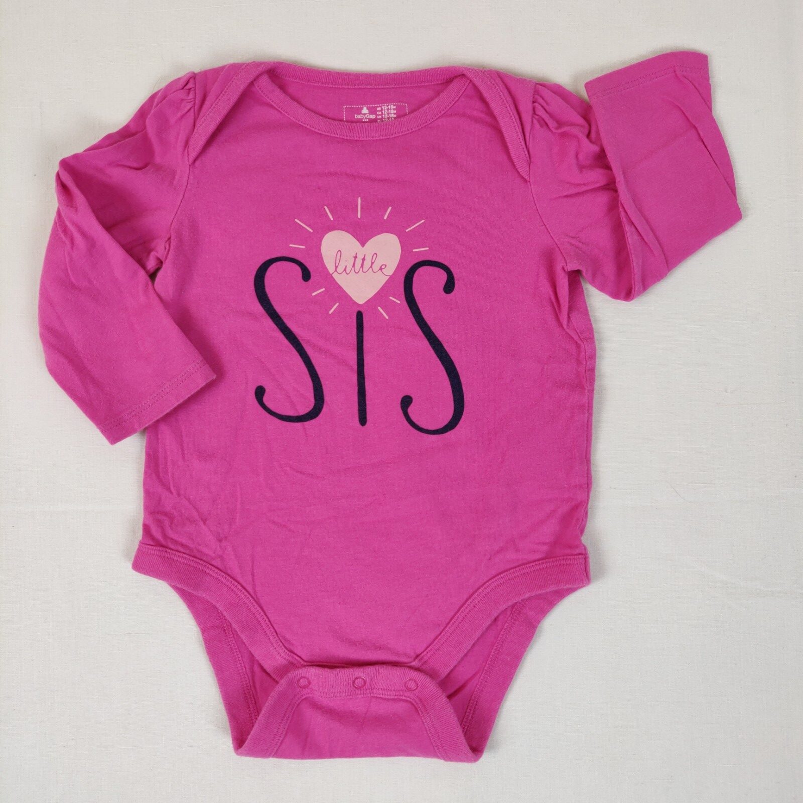 Autres commentaires : Body à manches longues – rose avec inscription centrale bleu marine « Little Sis ».