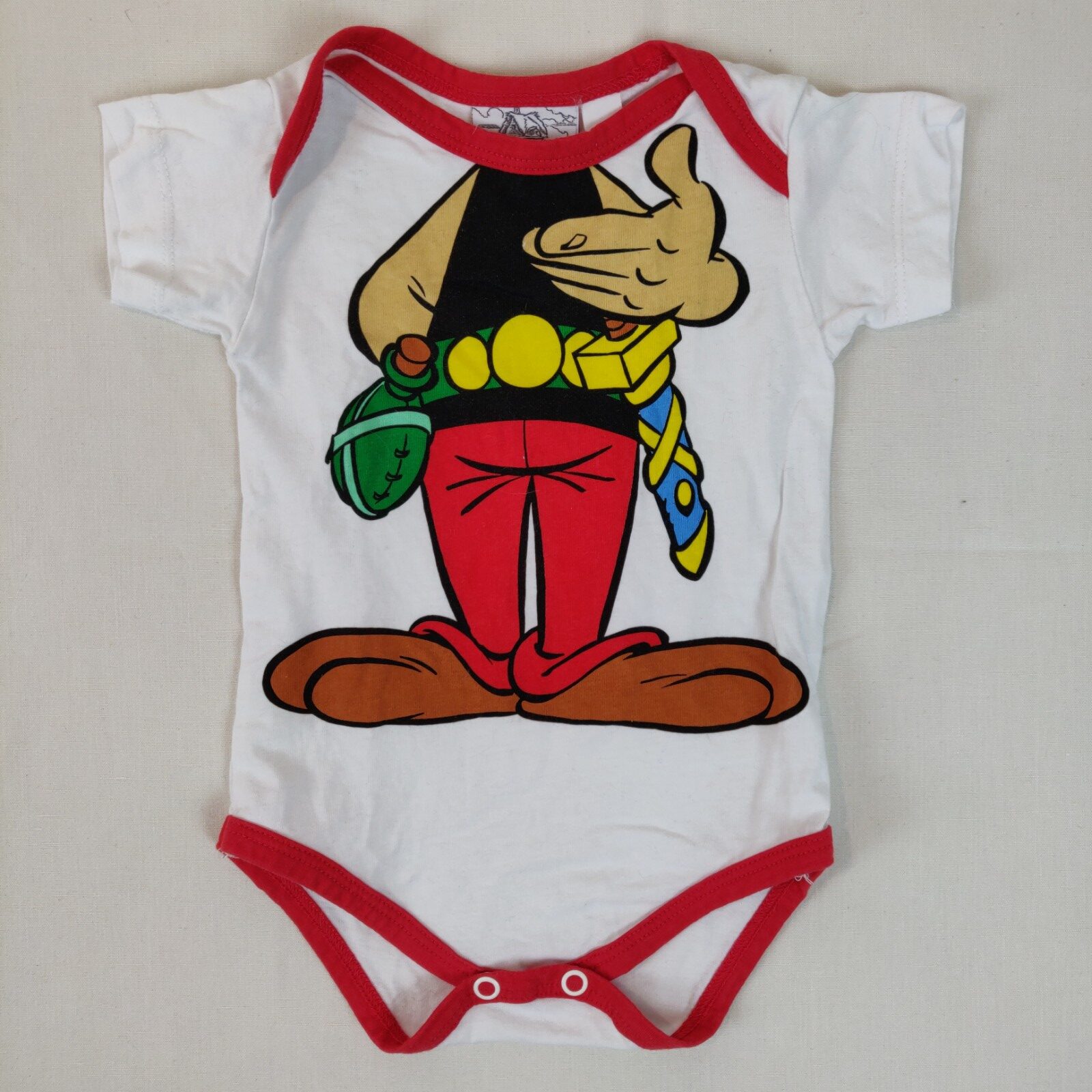 Autres commentaires : Body manches courtes – blanc avec motif corps d’Asterix – ouverture à l’entre-jambe à 2 boutons pression.