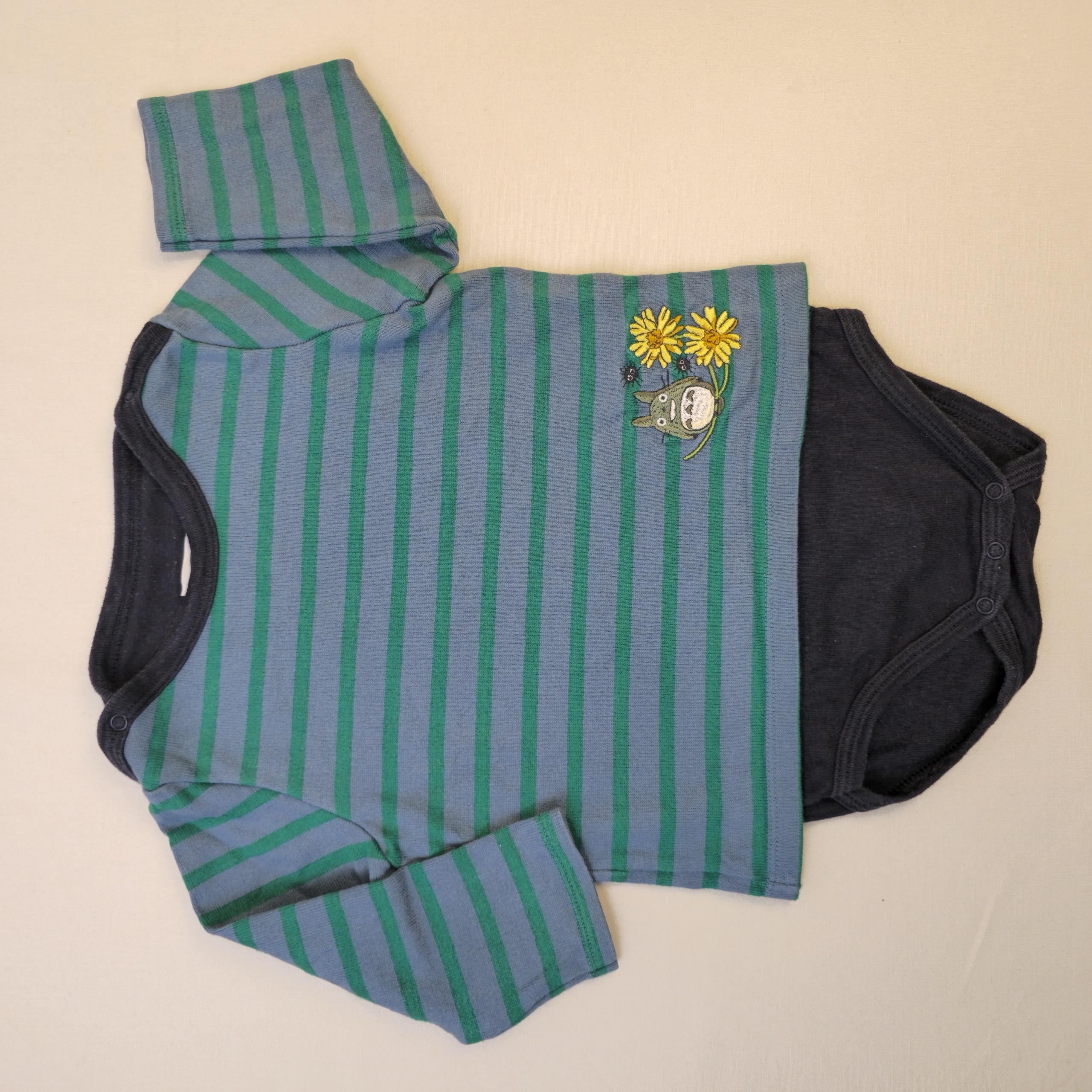 - Body-sweat à rayures, fermeture par boutons pressions sur les épaules et en bas, motif hibou.