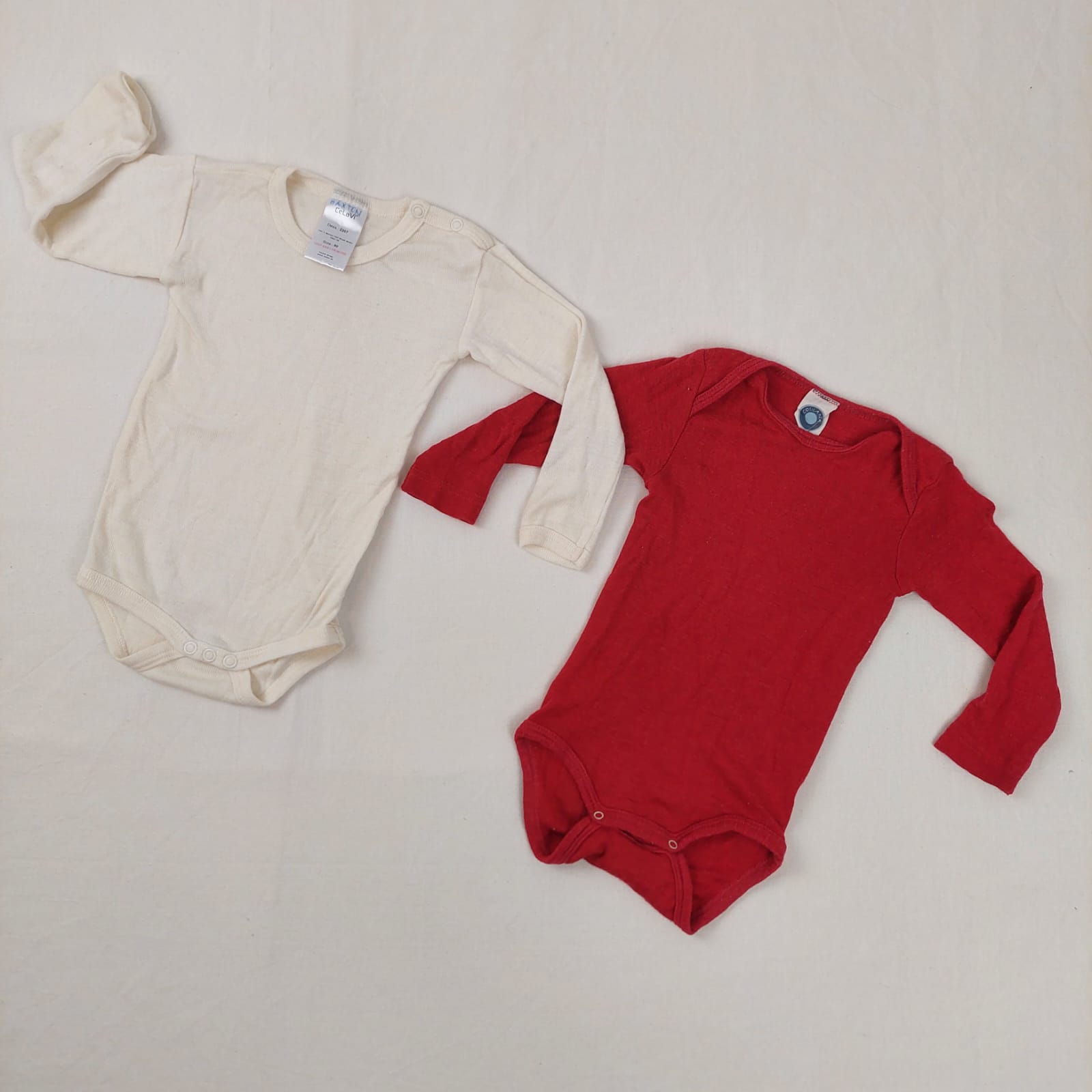 Autres commentaires : Body blanc cream CeLaVi manche longue, body Cosilana 70% liane vierge, 30% soie, rouge manche longue