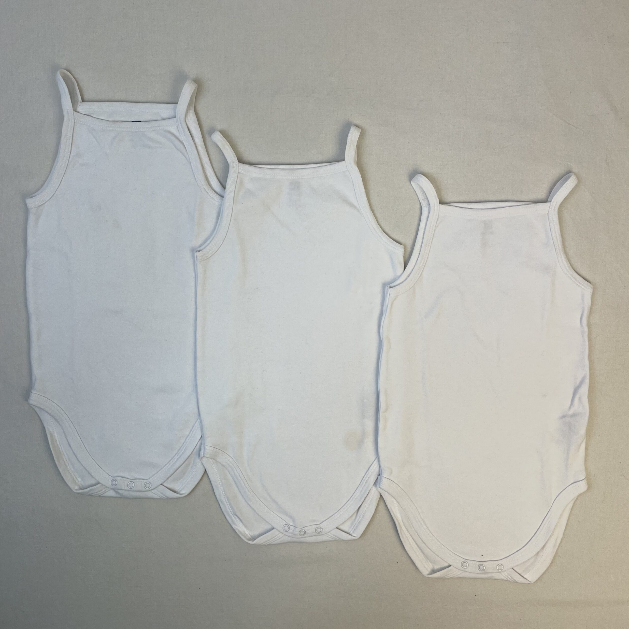 - Lot de 3 bodies sans manches, fermeture par boutons pressions en bas, petite tache.