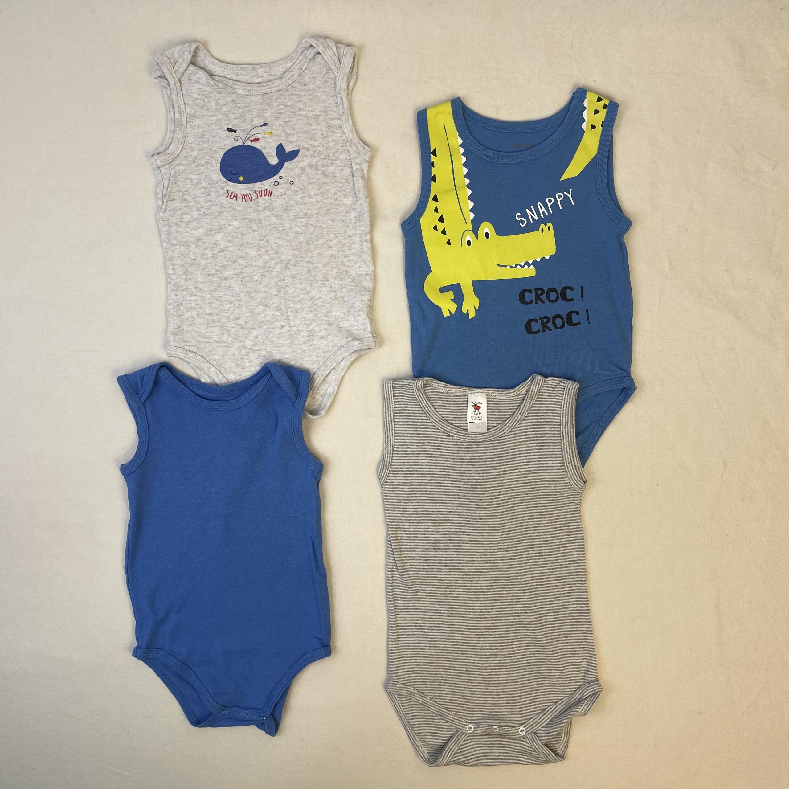 - body sans manches gris à motif de crocodile avec inscription « snappy croc ! croc ! », fermeture à l’entrejambe par boutons pressions