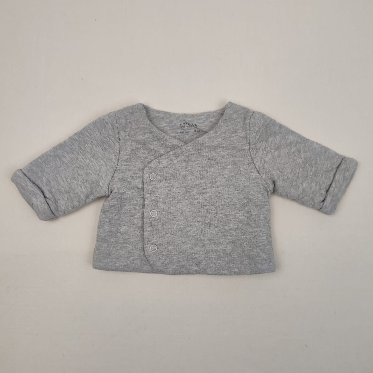 Autres commentaires : Brassière croisée à manches longues grise en coton matelassée NATALYS, doublure en jersey,revers aux manches fermeture devant et intérieur par boutons pression.