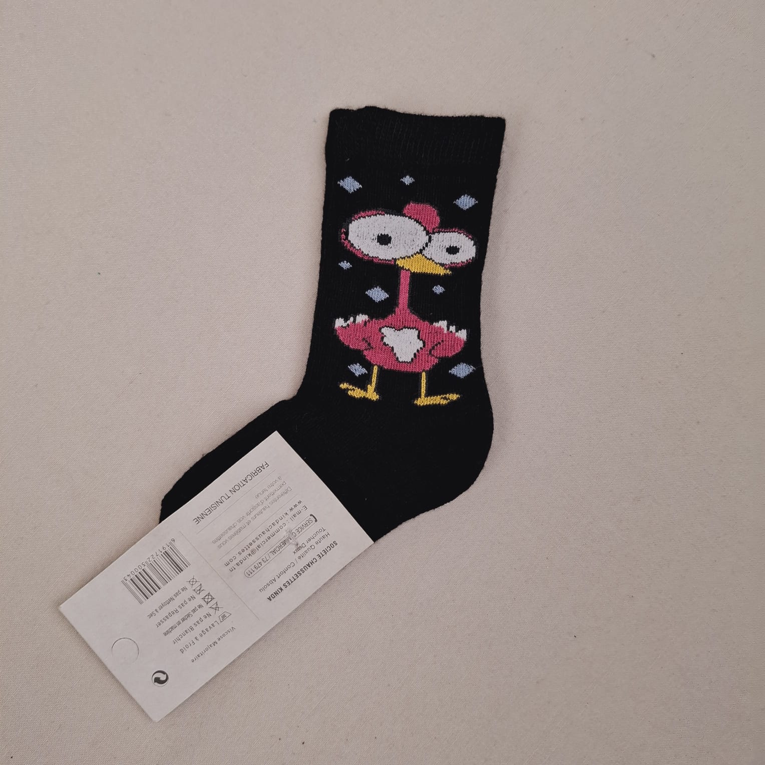Autres commentaires : Chaussettes noires, motif canard rose, taille 24-26.