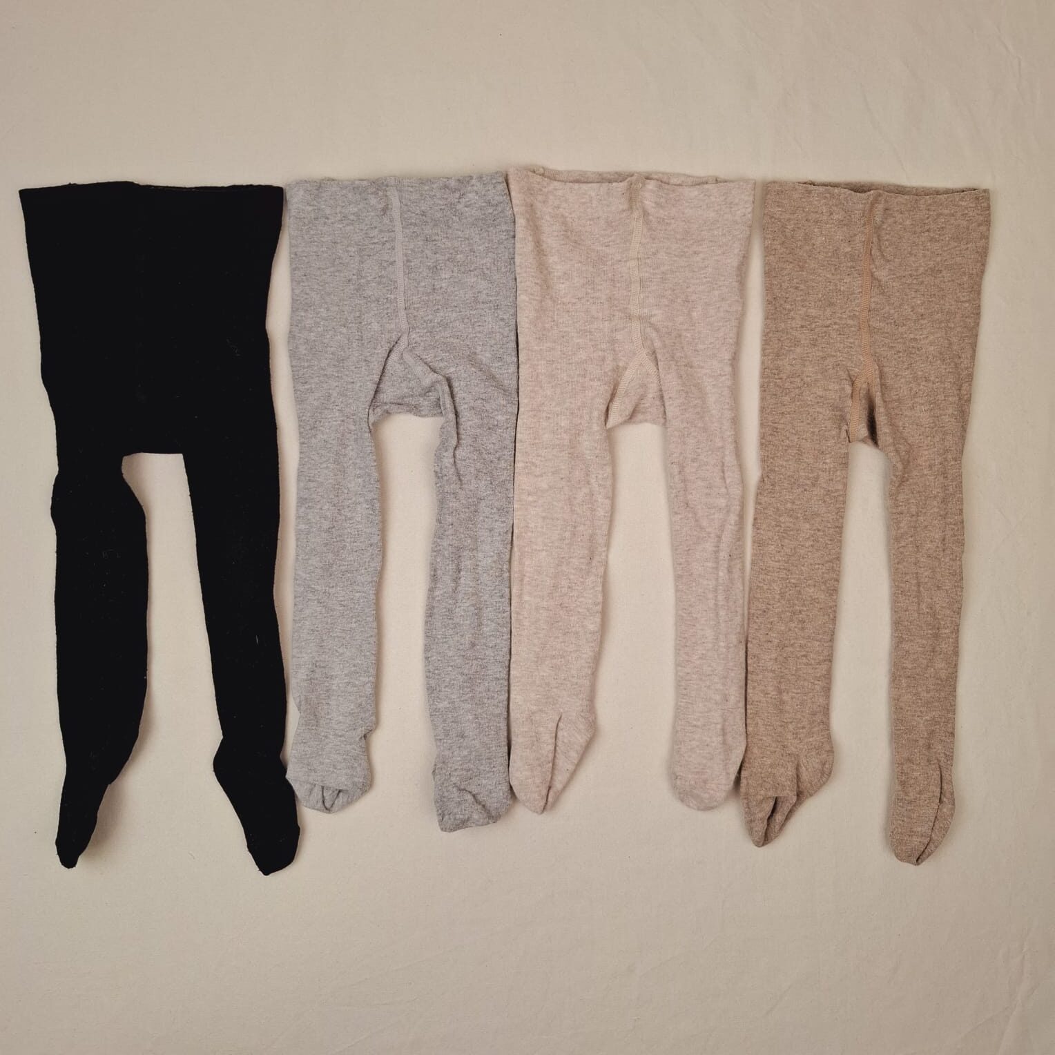 Autres commentaires : Lot de 4 paires de collants en maille, unies : – une paire écrue et une beige grège, 28% polyamide et 2%élasthanne. – une paire noire, 26% polyamide et 3%élasthanne. – une paire gris clair, 28% polyamide et 3%élasthanne. Quelques fines peluches de frottement.