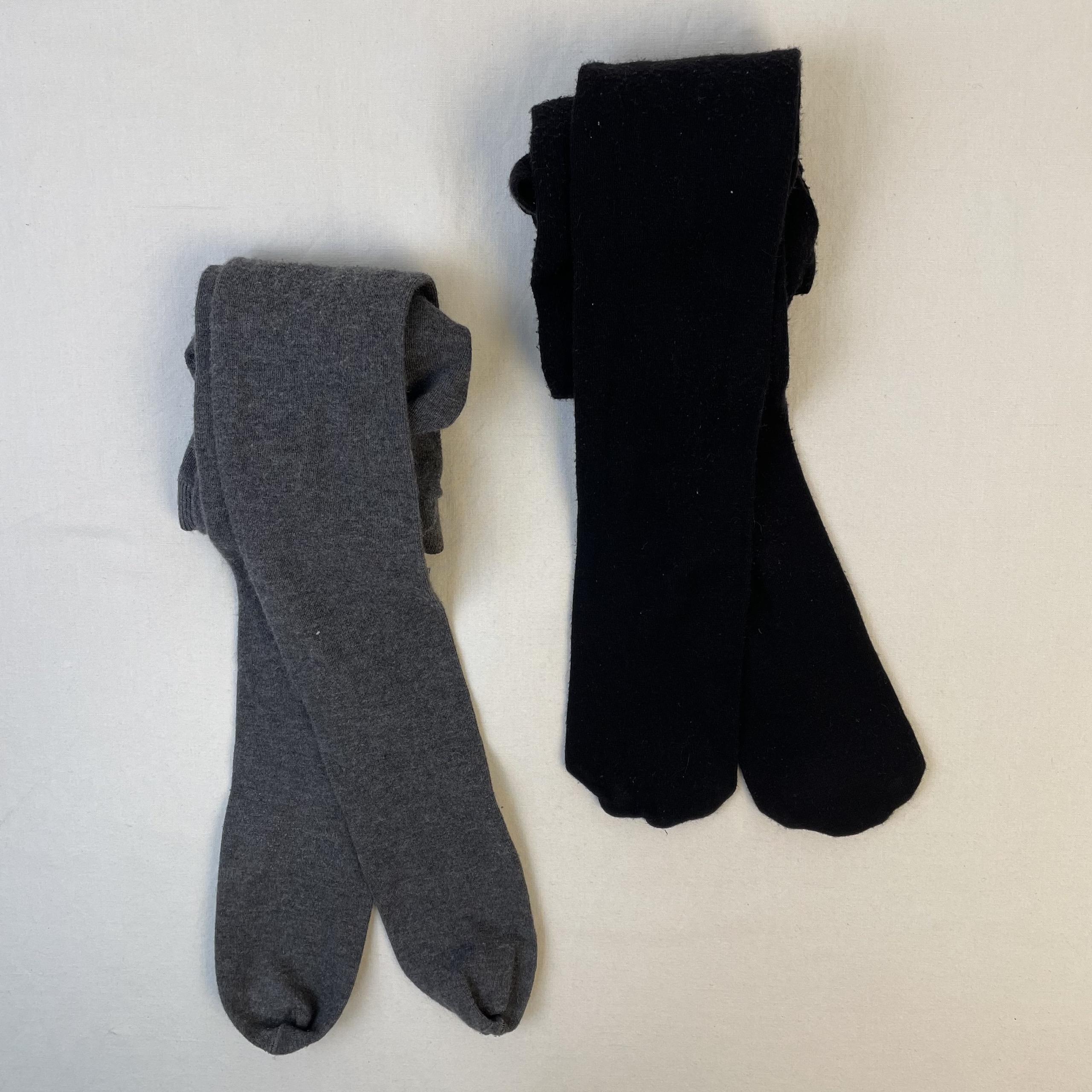 - Lot de 2 paires de collants en tricot : une noir et une grise.