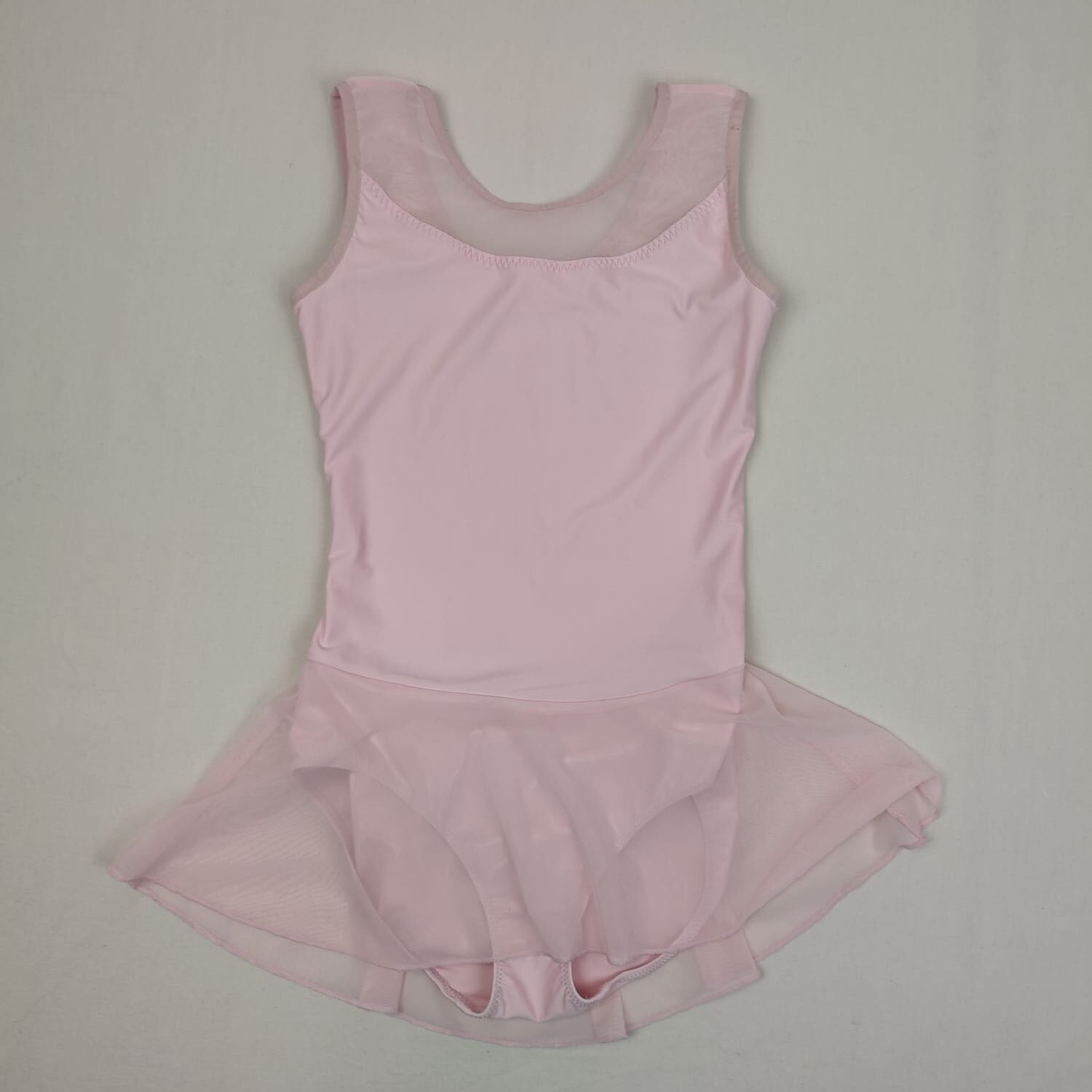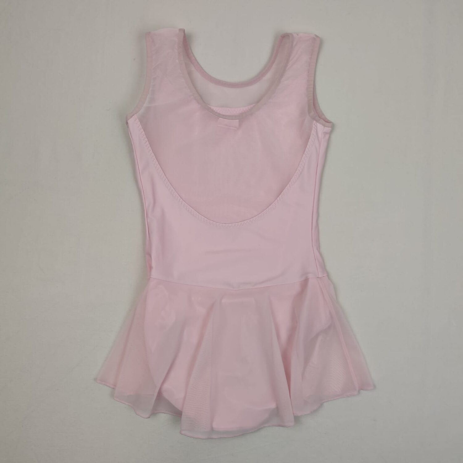 Autres commentaires : Justaucorps de danse classique rose avec jupette en tulle transparent, dos en tulle transparent.