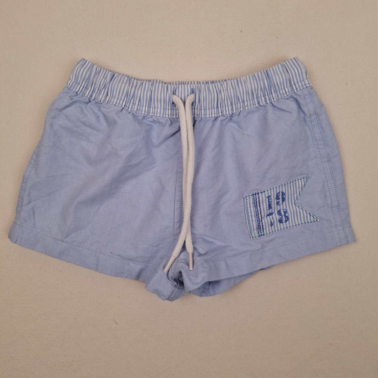 Autres commentaires : Maillot de bain Jacadi 12M bleu claire avec taille élastiquée réglable par un lacet de serrage et inscription « 1978 » à l’avant , coton et polyester